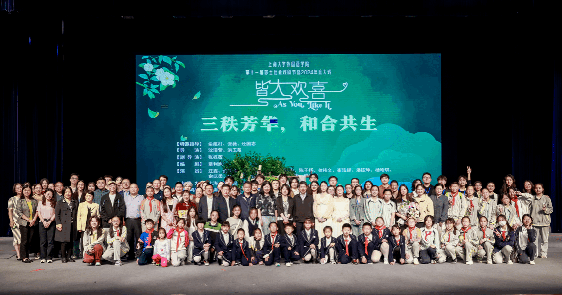 5月11日晚,上海大学第十一届莎士比亚戏剧节暨外国语学院2024年度大戏《皆大欢喜》在伟长楼成功展演。今年,是纪念上海大学建校102周年、庆祝上海大学新合并组建30周年,外国语学院积极推进校园文化建设,充分发挥学生主观能动性,鼓励学生自编、自导、自演,把书本知识转化为学生们亲身的文化认知体验,传播中华文明,坚定文化自信,学习莎翁经典,促进中外文化互鉴。