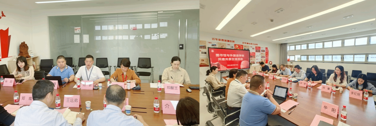 外国语学院办公室主任郑醒芝、党委组织员华阳,图博档党委委员、资源建设中心主任方向明,资源建设中心副主任周馨,主管徐晓、李红培以及信息服务中心副主任介凤等参加了此次交流会。(文/图:徐晓)