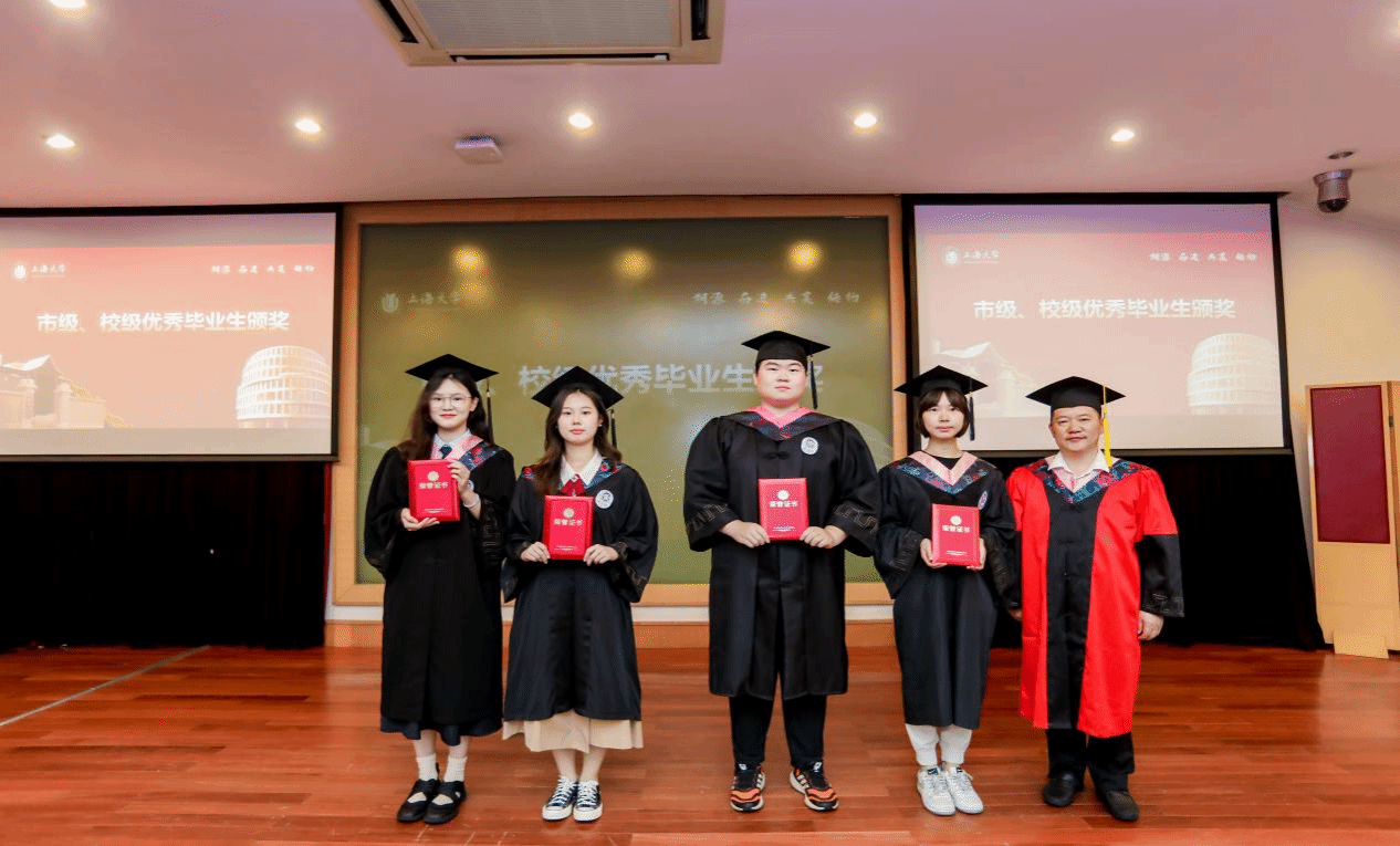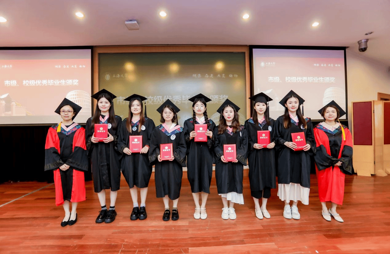 随后,吴蔚书记和尚新院长为上海市优秀毕业生们颁发证书;黄欣老师、李晓媛老师、马拯老师和于梅欣老师为上海大学优秀毕业生们颁发证书。毕业生们从颁奖嘉宾手中接过的奖状,不仅是一份荣誉、辛勤学习的回报,更是承载了学校、学院、导师的殷切希望,希望他们谨记那份被褒奖的努力,在未来的道路上不忘初心,砥砺前行,向着更广阔的人生舞台接续奋斗。