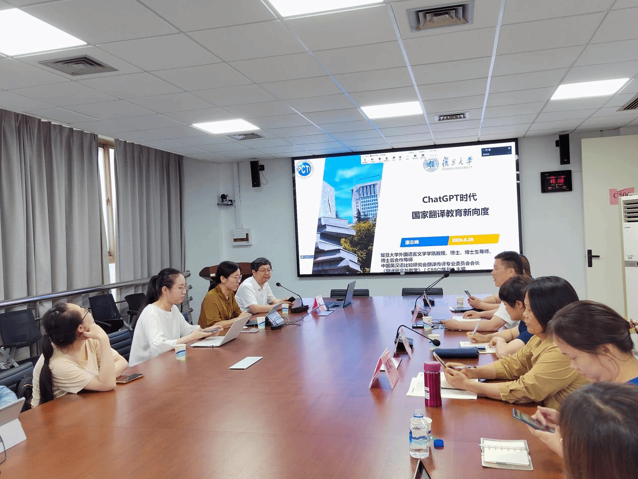6月26日下午,外国语学院教师教学发展中心在宝山校区C506举办了“外语与外语教学”系列讲座(第二十一期),复旦大学外国语言文学学院康志峰教授为我校外国语学院师生带来主题为“ChatGPT时代国家翻译教育新向度”的讲座,探讨通用人工智能浪潮下国家翻译教育面临的新挑战和新机遇。外国语学院党委书记吴蔚,党委副书记、院长尚新,副院长戴朝晖、副院长唐青叶、教师教学发展中心主任马拯、学院青年教师和研究生共同参加本次讲座。