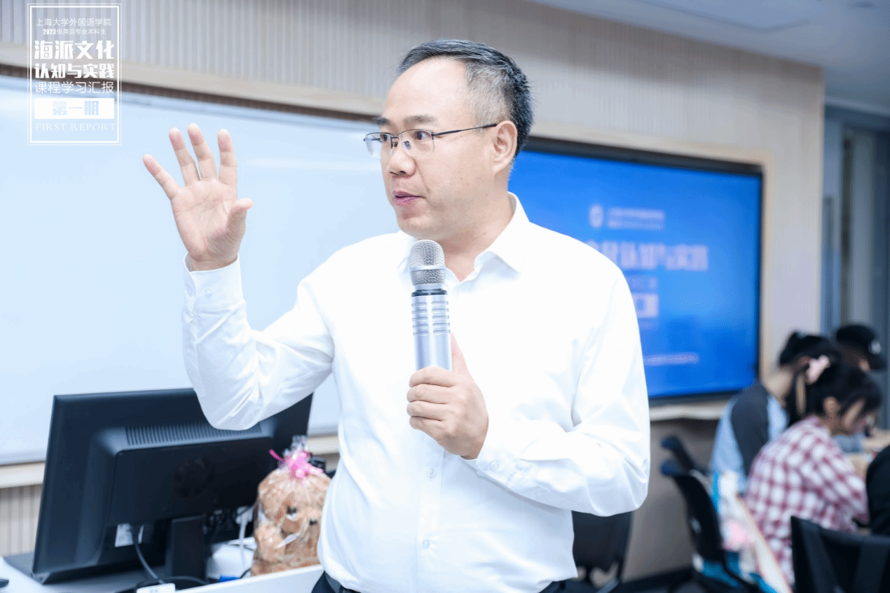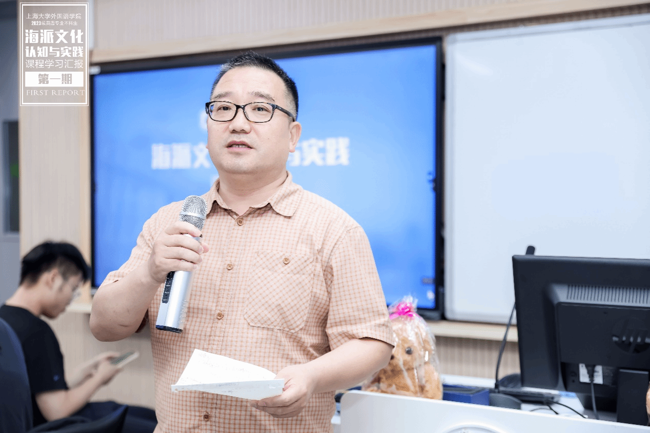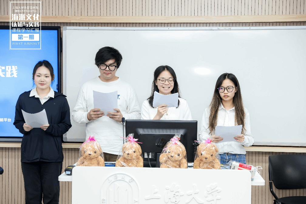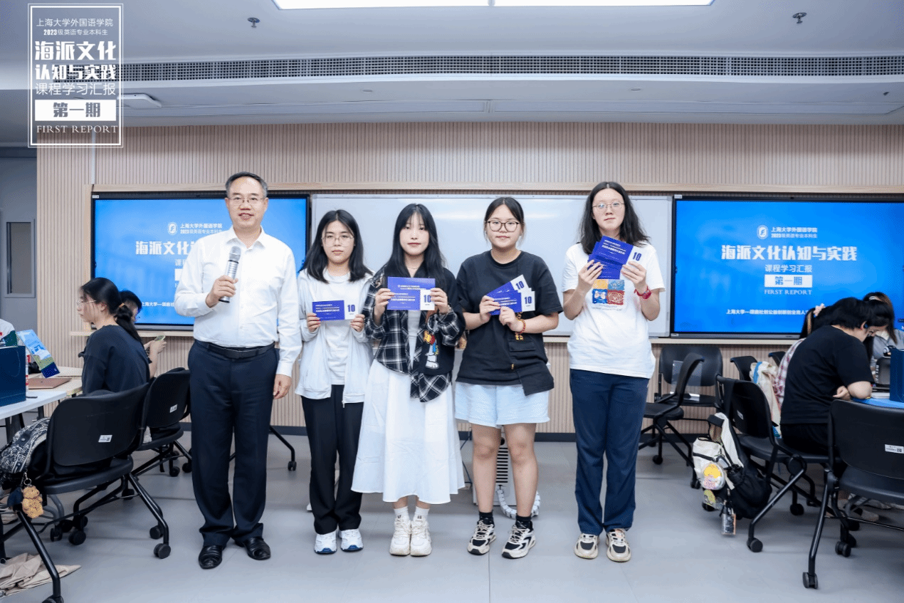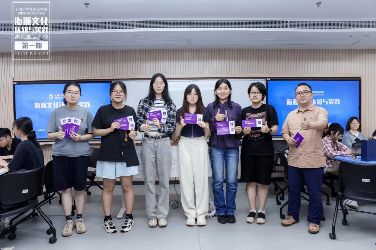 2024年6月26日下午,上海大学外国语学院2023学年夏季学期《海派文化认知与实践》课程学习成果汇报展示在B319教室顺利举办。本次汇报展示由上海大学外国语学院和上海市公益创业育人实践基地联合主办,英语专业龚萍老师与基地校外导师谢文轶老师共同策划,由2023级英语专业王紫樱、李佳妮、易心怡和2023级日语专业林培鑫主持。
