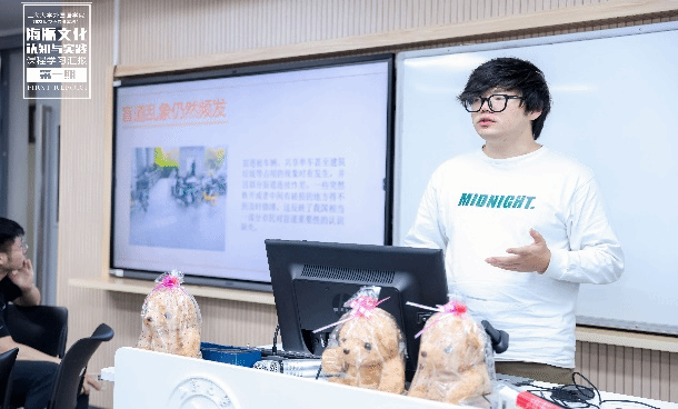 汇报中场,谢文轶老师播放了花絮片段,展示了同学们在课程过程中的风采。接着王驰副院长、王文斌主任、章春明老师以及张珊珊老师为同学们颁发了志愿者证书与纪念品。戴朝晖副院长与谢文轶老师对课程进行了总结分享,戴朝晖副院长为组长、协调组同学以及主持人颁发礼物;最后,他也代表学院感谢各位校内外专家与指导老师对本课程的关心与付出。