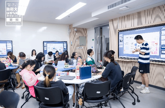汇报的后半场,第五组聚焦海派建筑特色,并重点介绍了公益海报的设计思路。第六组就讲座梗概、vlog片段以及公益方案创新点三方面进行汇报。接着,第二组侧重翻译与设计中的感悟,从City-Walk路线与公益策划案的改进进行分享。第八组播放了视频剪辑,也展示了小组成员在志愿活动中的风采。第九组聚焦宣传材料的制作,也重点体现了对于策划方案与思考,并据此创作出原创的各类反映活动主题的帆布袋、文创等周边产品设计稿,得到在场专家和老师的一致好评。