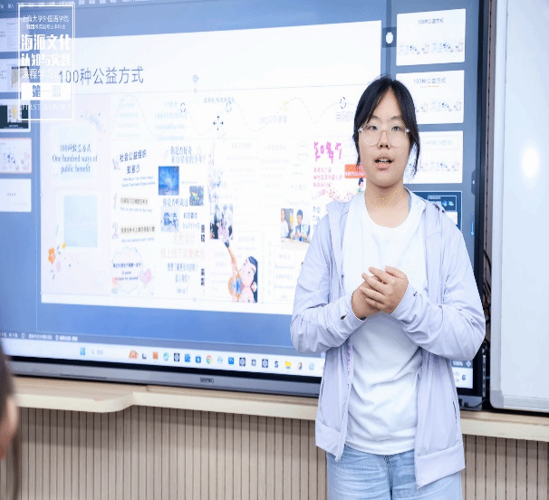 通过本次课程前期的海派文化工作坊讲座,到后来以小组为单位的City-Walk路线设计、行走及多语种Vlog视频创作,以及结合公益实践活动复刻“100种公益方式”国际版,对原有方案进行改进和优化,最终策划并设计出面向不同目标群体的双语活动方案与宣传资料,同学们不仅对上海文旅与职业规划有了进一步的了解,在线路规划中感受到海派文化的独特魅力,更是通过实践活动感受到公益的内涵以及其带来的满足感与成就感。因此,在本次课程汇报展示中,各个小组聚焦不同专题与内容,带来课程成果分享。