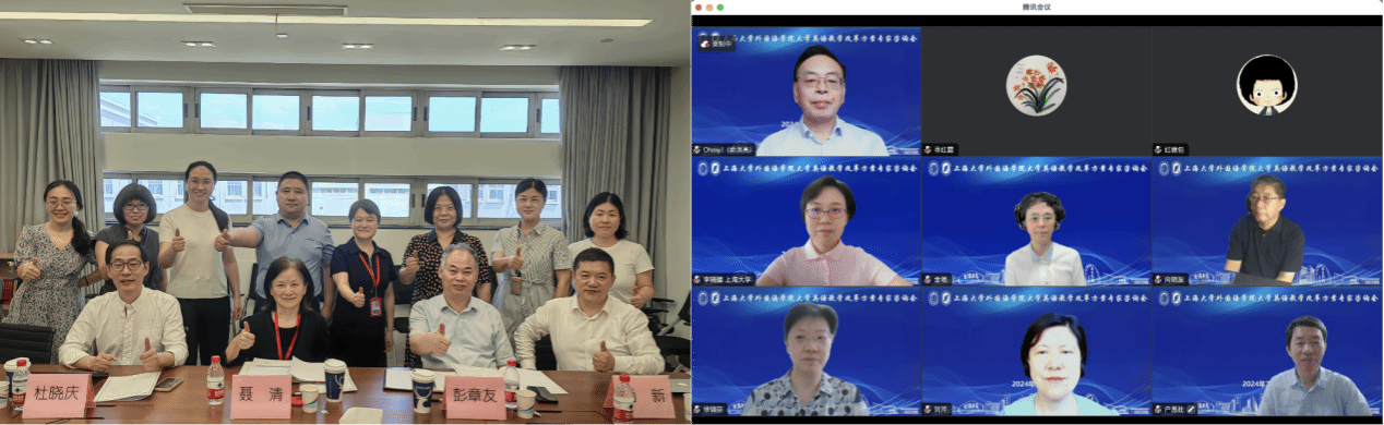 为积极探讨“四新”建设背景下的大学英语教育教学改革,主动应对数字化时代大学英语教育面临的机遇与挑战,努力答好“强国建设,英语何为”的时代命题,2024年7月16日上午,在上海大学宝山校区 C 楼 412 会议室隆重召开上海大学外国语学院大学英语教学改革方案专家咨询会,全方位为我校大学英语教学改革方案“问诊把脉”,探讨外语教育如何更好地服务于国家发展大局,助力大学英语教学改革提质增效。此次咨询会采用线上线下相结合的方式举行。
