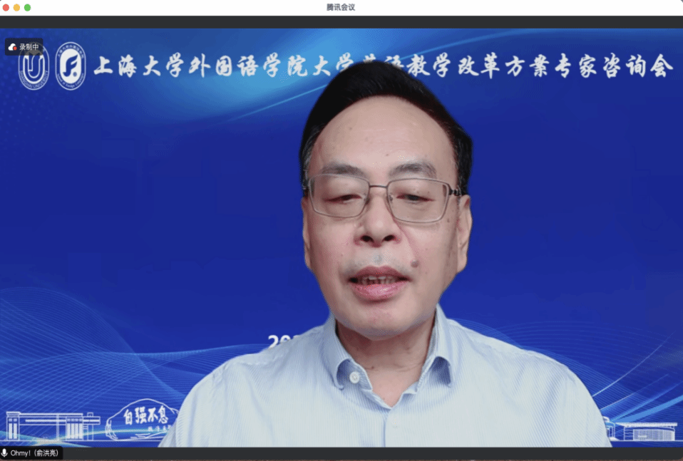 教育部大学外语教学指导委员会副主任委员、扬州大学俞洪亮教授代表专家致辞。他充分肯定了大学英语教学改革方案中提出的“精准化、差异化和个性化”符合新时代的要求和上海建设国际化大都市的要求,同时也符合上海大学的办学定位。他建议后续方案修订应当处理好大学英语的课程性质与课程目标的关系,处理好大学英语课程与外国语言文学和英语类专业建设之间的关系,处理好大学英语教育与教学的关系,处理好大学外语服务全校总体人才培养目标与服务“四新”建设的关系,处理好语言能力与数字素养与能力的关系,还要处理好母语素养与外语能力的关系。