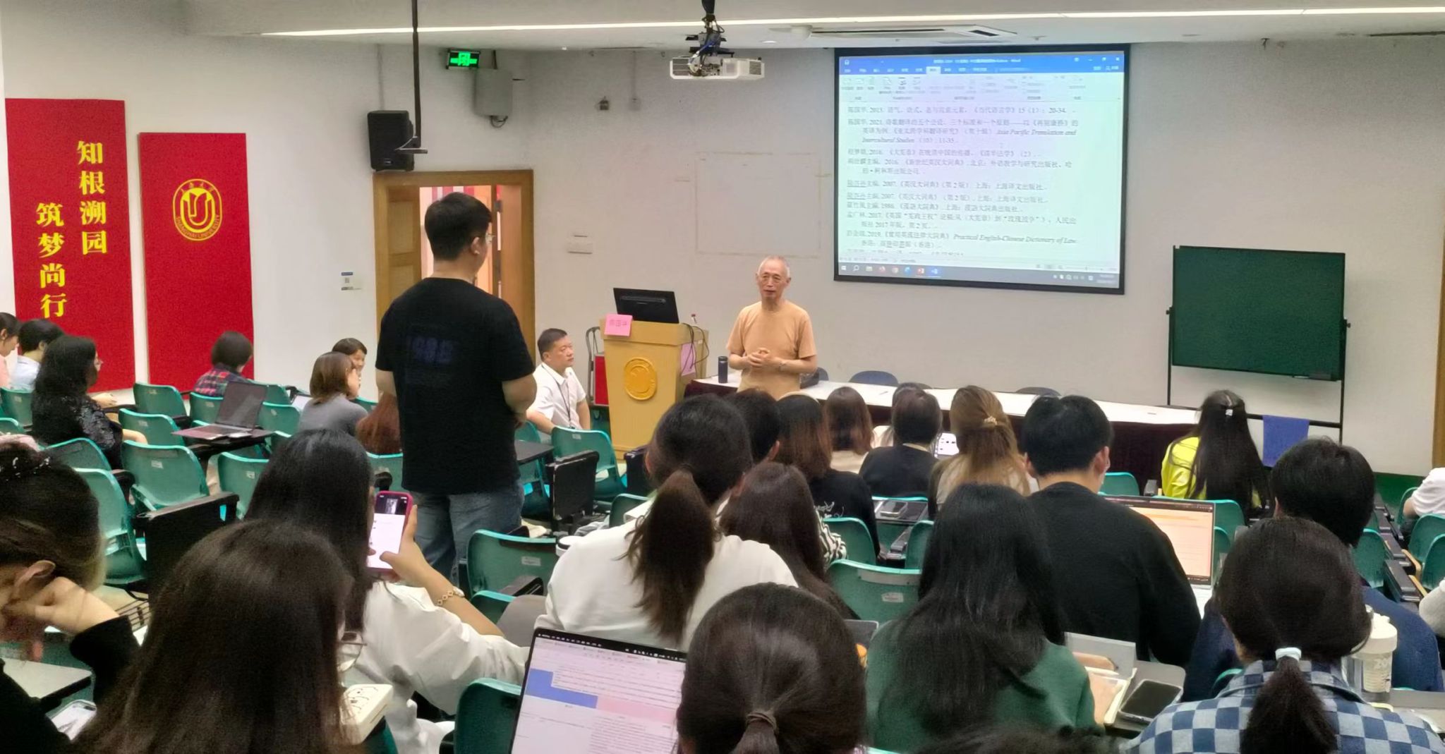 本届学术节的第一个活动是北京外国语大学陈国华教授带来的学术讲座。讲座由尚新院长主持,主题为英国历史人物姓氏中译的原则:对“艰难的翻译:评陈国华译《大宪章》”的回应,陈教授主要回应了学者王栋对其《大宪章》译本的书评。书评指出陈教授的译本有许多不合学界惯例的翻译,认为学者毕竞悦的翻译更好,陈教授秉着学术探索精神,有理有据地给出回应。陈教授首先说明了他翻译大宪章的目的,他认为,翻译《大宪章》这样一本对世界思想史有深刻影响的宪法经典,能开拓英语学习者的视野,加深文明交流互鉴。接着,陈教授对比了其译本和毕译本中有关英国历史人物姓氏的翻译,结合实例,指出毕译并未遵循历史考证原则,没有对历史人物的生平、家族进行全面考据,有错译的情况,以此说明书评中的错误。对于书评中陈译不合“学界惯例”的评价,陈教授认为所谓的“学界惯例”并不是一定正确的,对术语翻译应始终坚持史料考据,遵循历史原则,坚守学术规范。