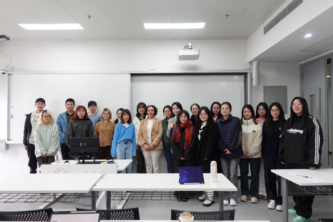 讲座末尾,法语系教师焦舒曼对讲座进行总结发言并致感谢辞。24级法语笔译研究生章媛媛向教授提问关于身份认同构建的问题。Belyazid教授指出,个体身份是多元的,跨越性别、地域和文化界限,展现出丰富的层次和面貌。她以个人成长经历为例,分享了自己作为摩洛哥人、阿拉伯语母语者,以及法语、西班牙语和英语等多语言使用者的跨文化体验,强调多重身份的融合是一种宝贵财富,关键在于对这些身份持包容、尊重的态度。同时,24级法语笔译研究生徐潇轩也分享了她对跨学科研究的独到见解,提到了一位法国学者通过人类学视角翻译《诗经》的例子,尽管该译本受到了批评,却从跨学科的角度开辟了全新的研究视野。