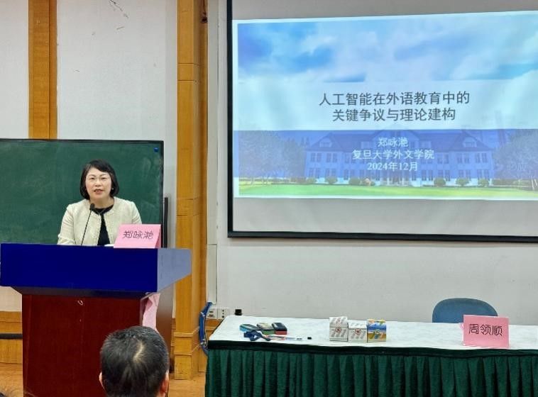 第三位发言人是来自复旦大学的郑咏滟教授,她发言的题目是“人工智能在外语教育中的关键争议与理论建构”。面临人工智能的兴起给外语教育带来的机遇与挑战,郑教授首先讨论了人工智能可能带来的内容真实性与安全性、刻板印象与文化偏见、意见多样性与创新性降低、智能鸿沟和社会不公等问题。接着,郑教授分析了生成式人工智能介入外语学习具有的多主体性、多方向性、群体网络性等特征,倡议构建协商互联二语习得框架,激发学习者的认知能动性,实现外语学习目标。