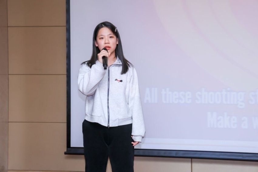 随后,2024级外国语言文学专业研究生马依雯带来《SHOOTING STAR》歌曲表演,歌声悠扬悦耳,令在场师生沉浸其中,也使现场氛围更加轻松活跃。