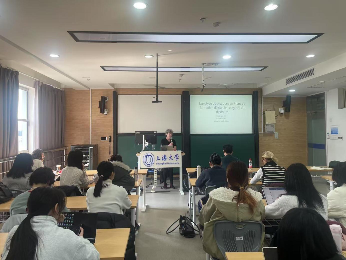 2025年2月19日下午1点,上海大学外国语学院法语系举办了两场《中国与法语世界》系列学术讲座,邀请巴黎第十二大学的语言学教授Frédérique Sitri与法语世界文学讲师Anne-Laure Rigeade,分别就《法国话语分析研究概述》和《工厂里的少女:多语性文本的创作起源》两个主题进行了深入讲解。