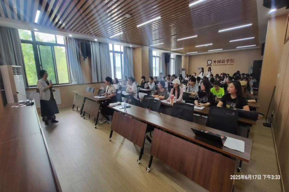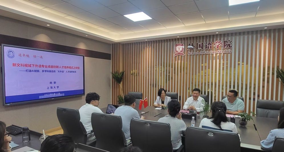 6月17日下午,尚新教授为长安大学外国语学院的教师们带来了一场题为“新文科视域下外语专业卓越创新人才培养模式之转型——打造AI赋能、多学科融合的‘大外语’人才培养体系”的讲座。长安大学外国语学院院长冯正斌教授主持。冯院长对上海大学外国语一行的到访表示热烈欢迎,对两学院不断深入的交流合作给予了高度肯定。讲座环节,尚新教授通过系统回顾外语专业人才培养模式的发展历程,深刻阐释了在新时代背景下构建融合型培养模式的必要性,并以上海大学外国语学院的人才培养方案修订为例详细解读了如何重构外语人才培养体系,以适应人工智能时代对卓越创新外语人才的需求。这场兼具理论深度与实践指导意义的讲座,赢得了在场教师的一致好评与热烈反响;随后在座的老师们就外语学科各专业的课程设置、人才培养目标、教师发展和教学改革等问题进行了深入探讨,尚新院长一一予以回应,双方在交流中深切感受到AI时代外语学科面临的调整与责任担当。