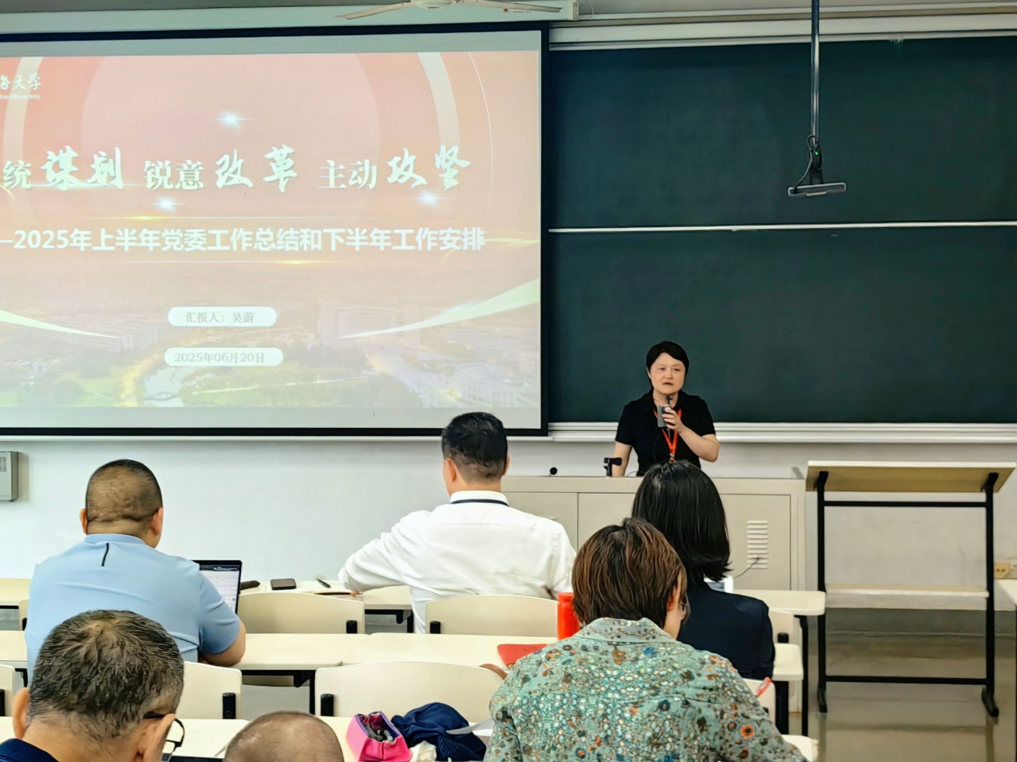 党委书记吴蔚以 “系统谋划、锐意改革,主动攻坚” 为题,全面总结了上半年党委工作。在过去的半年里,学院党委坚持党建引领,聚焦 “三个到位”,深入贯彻中央八项规定精神学习教育走深走实;全力筑牢师德师风建设根基,提升教师育德认识和育德能力;通过强基固本赋能,有效推动基层党建提质增效。展望下半年,党委将继续系统谋划,筑牢学院高质量发展的政治保障;锐意推进改革,切实抓牢基层党建工作质量;主动攻坚克难,以巡察整改为契机全面推进学院各项工作。