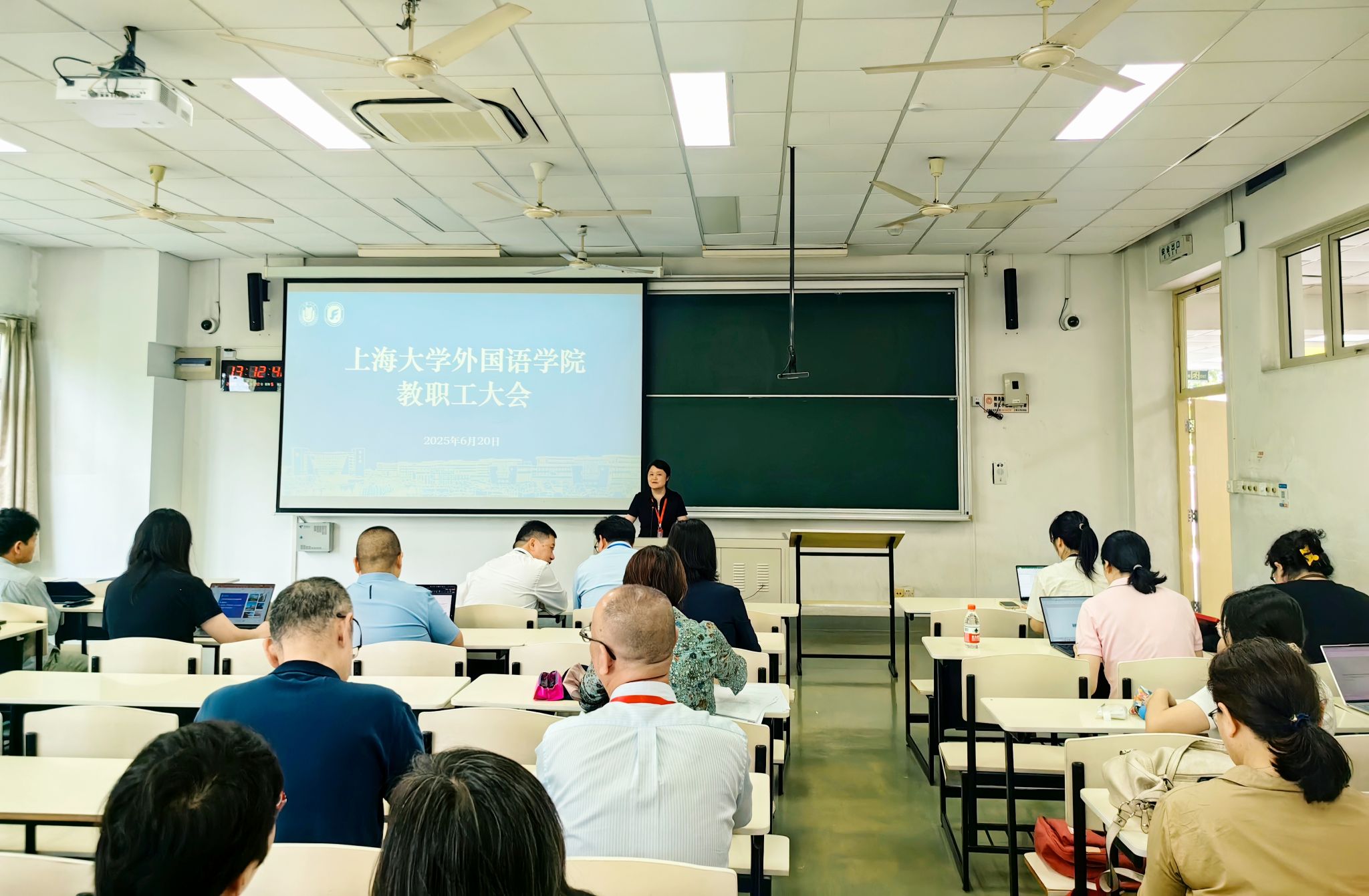 2025年6月20日,外国语学院教职工大会在CJ203召开。学院党政领导班子成员与全体教职工齐聚一堂,此次特别邀请到学校党委教师工作部张富文教授做师德师风专题宣讲,会议由学院党委书记吴蔚主持。