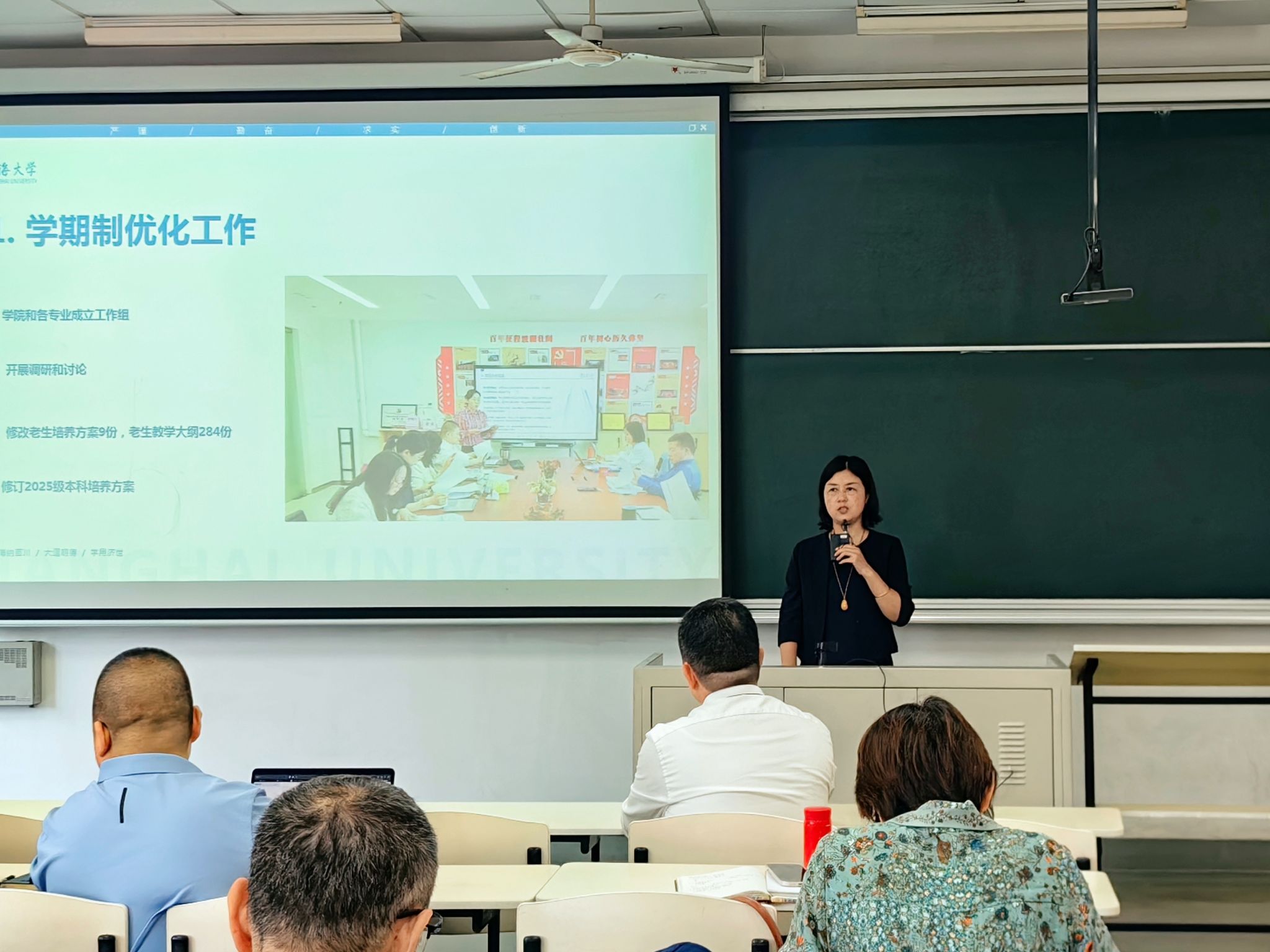 副院长张建琴围绕学期制优化、外事工作、全程导师落实情况等方面进行了详细汇报。人才培养工作方面,她着重介绍了人才培养方案修订进展和进一步修改要求,以及微专业招生、课程教改情况和实践与课外培养等方面的工作。针对秋季学期任务,她强调了毕业论文毕业审核的细节,并呼吁导师们加强对学生的关心与指导。外事工作方面,学院成功签署了两项重要协议,为学院国际化发展迈出坚实一步。