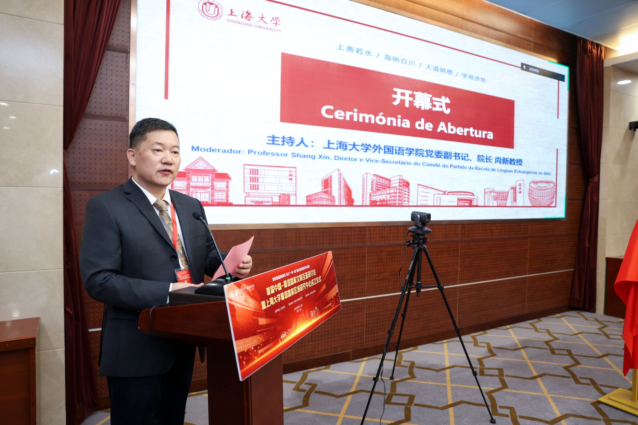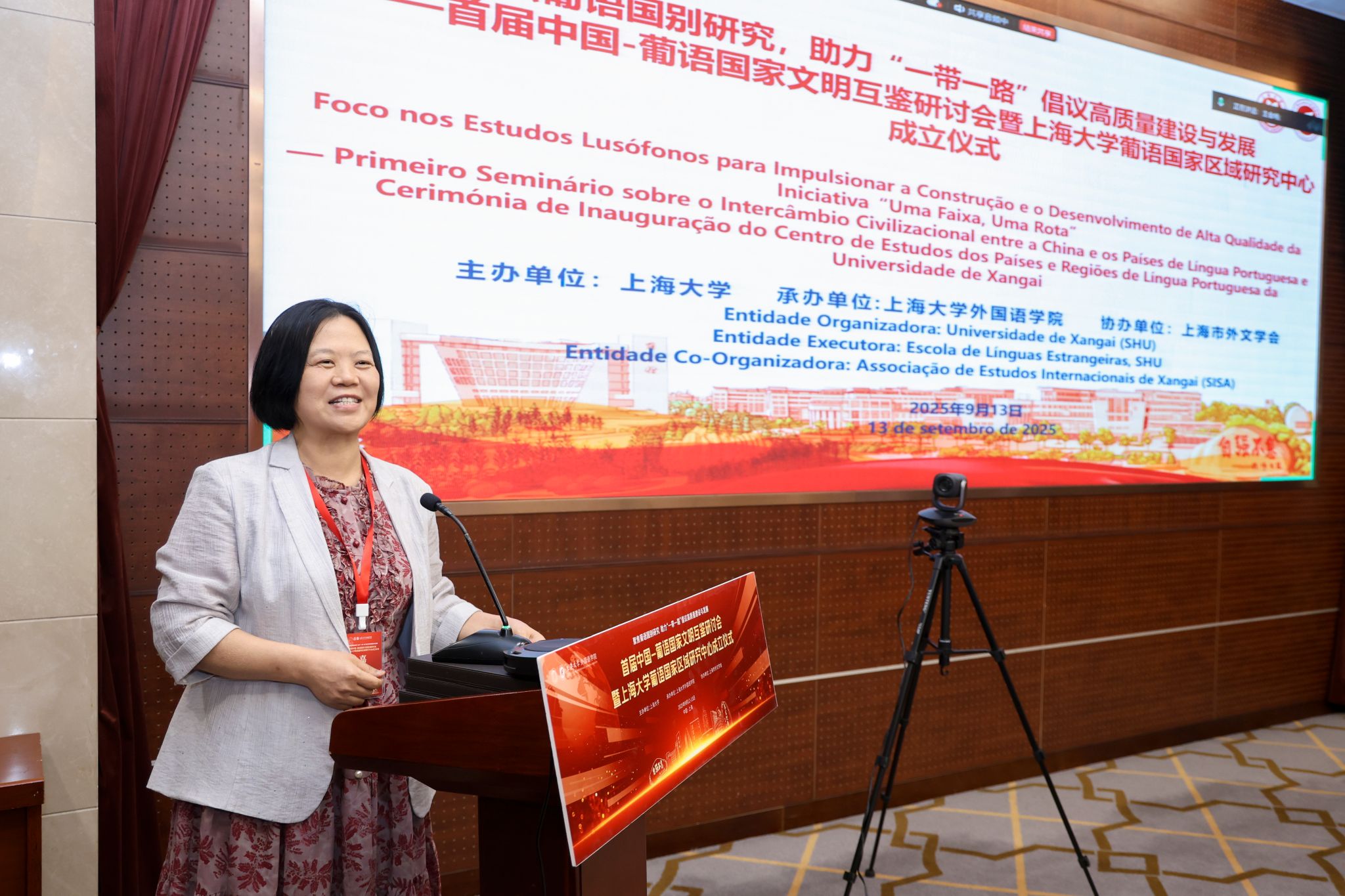 9月13日,首届中国-葡语国家文明互鉴研讨会暨上海大学葡语国家区域研究中心成立仪式在上海大学宝山校区乐乎新楼隆重举行,此次研讨会由上海大学主办、上海大学外国语学院承办、上海市外文学会协办。