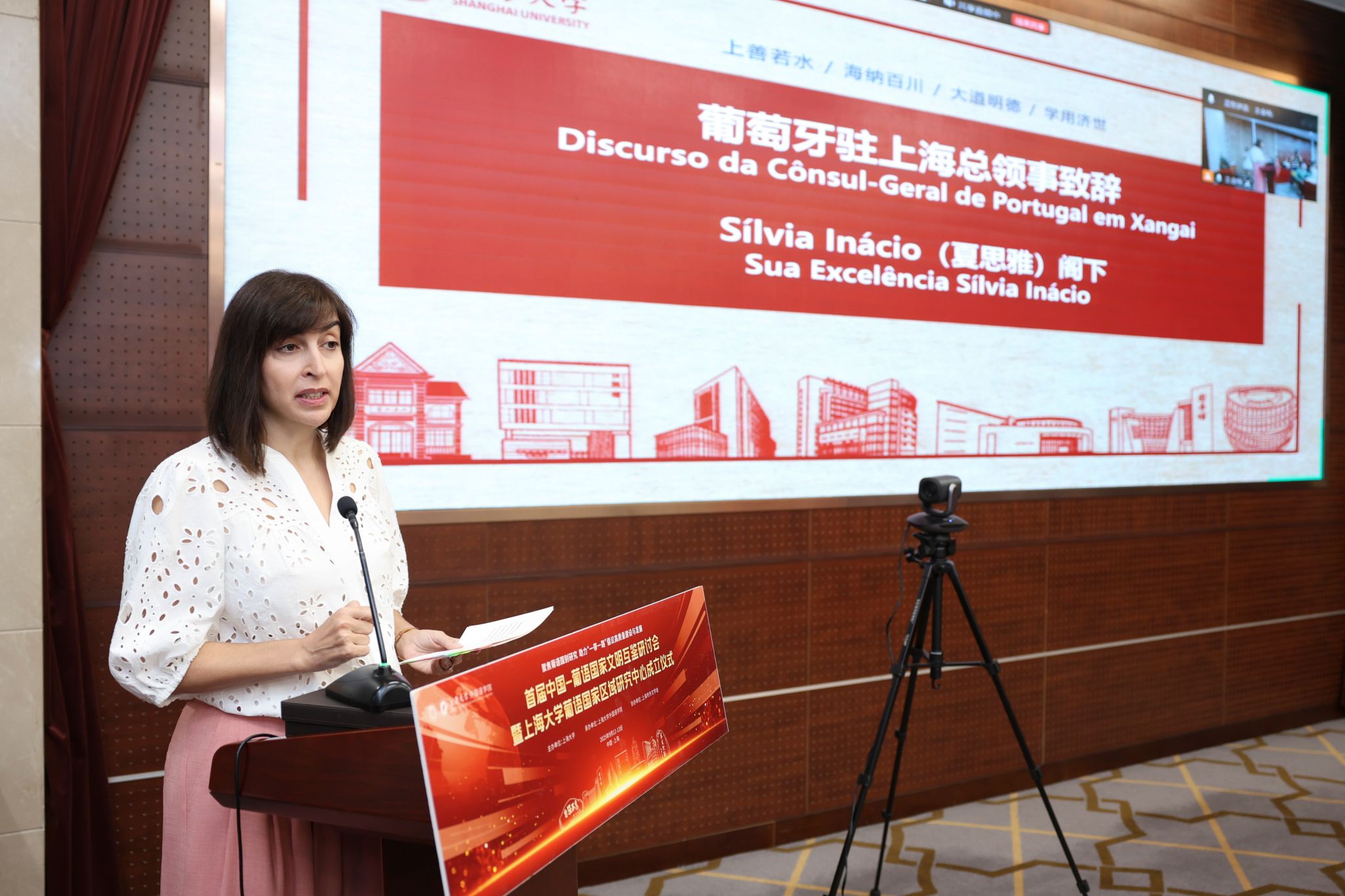 夏思雅(Sílvia Inácio)在致辞中指出,葡萄牙语在世界范围内传播广泛,推广葡萄牙语是中葡关系发展的基石,通过文化交往、学生交流积极促进两国人民之间的联系,充分拓展两国科技交流空间。她希望以葡萄牙总理路易斯·蒙特内格罗(Luís Montenegro)于2025年9月8日至10日对华重要访问为契机,进一步推动中国与葡语国家之间的文化交流,期望通过葡语国家区域研究中心的成立搭建起交流桥梁,实现中国与葡语国家的交流合作与互利共赢。
