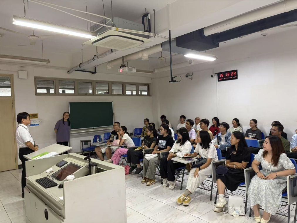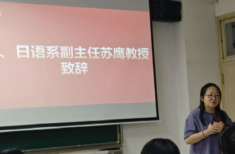 最后,日语系副主任苏鹰教授在总结发言中,向新生表达了殷切期望。她结合自身语言学习经历,分享了日语学习的方法,强调语言与文化融合学习的重要性。苏教授在讲话中特别提到新时代语言学发展的新方向,鼓励同学们立足专业基础,积极探索人工智能与语言学的交叉研究领域,欢迎同学们未来与老师们共同探索这一充满潜力的前沿方向,开启语言学习的新可能。