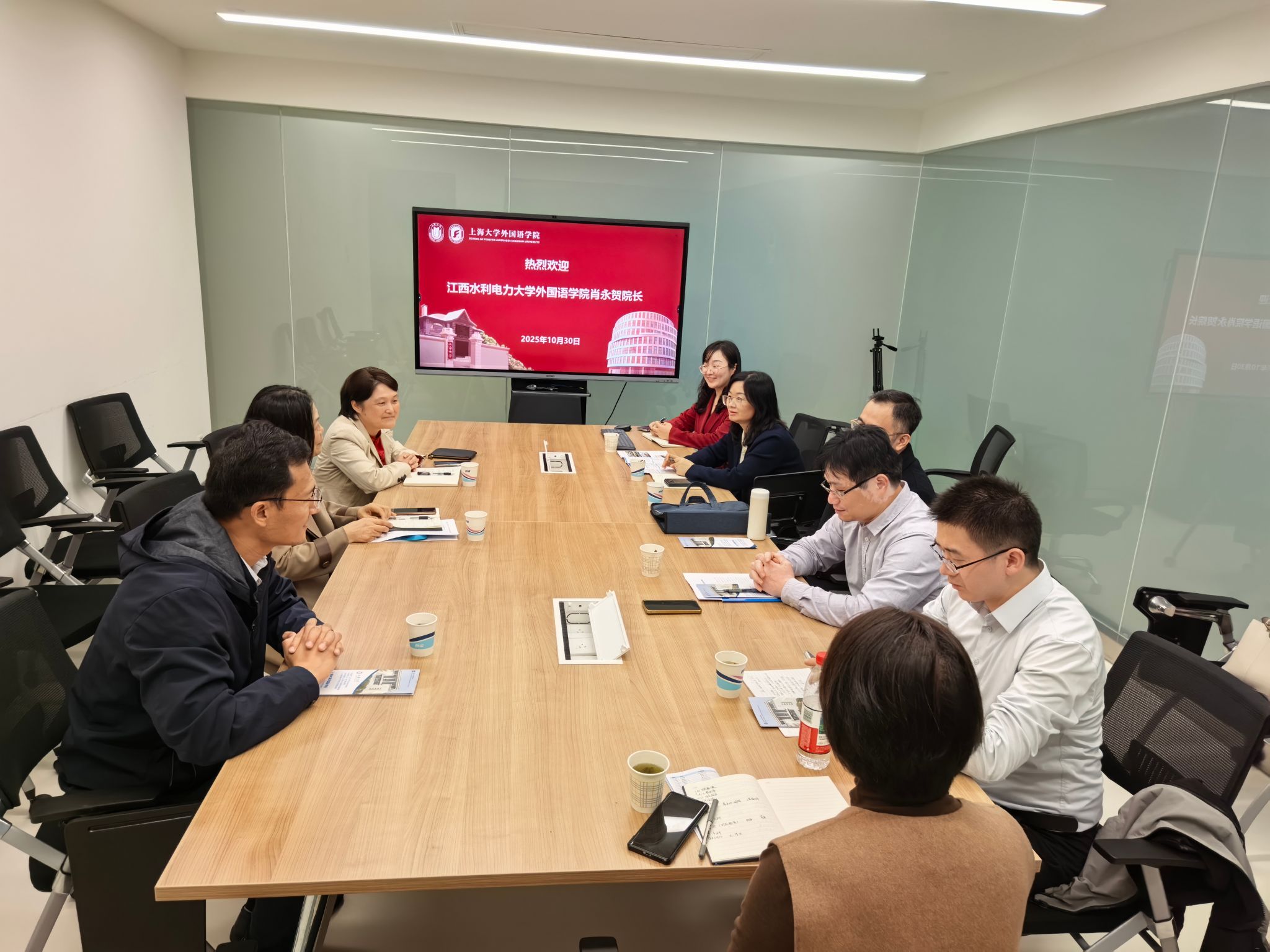 10月30日下午,江西水利电力大学一行到访上海大学外国语学院开展学习交流活动,双方聚焦“区域国别”学科建设和人才培养经验,在深化两校学科发展与高层次人才培养领域等方面的合作进行了深入探索。江西水利电力大学学科建设与学位办主任、研究生院院长杨铖教授带队,国际交流与合作处处长肖小聪副教授、外国语学院院长肖永贺副教授、研究生院学科办科长邓志平副教授,以及上海大学外国语学院党委书记吴蔚、副院长唐青叶教授参加了本次交流。