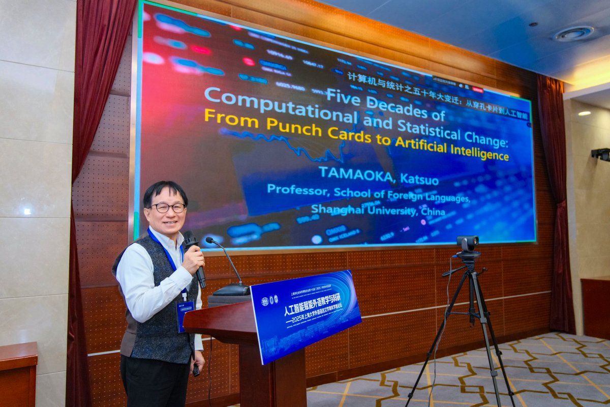 上海大学特聘教授玉冈贺津雄“Five decades of computational and statistical change: From punch cards to artificial intelligence”,详细介绍了计算机与统计分析的发展历程,并结合自身的研究经历进行回顾与思考,他强调在人工智能时代,AI发展迅猛,在不同研究领域中表现出色,并提醒青年学者们一定保持谨慎敬畏之心。