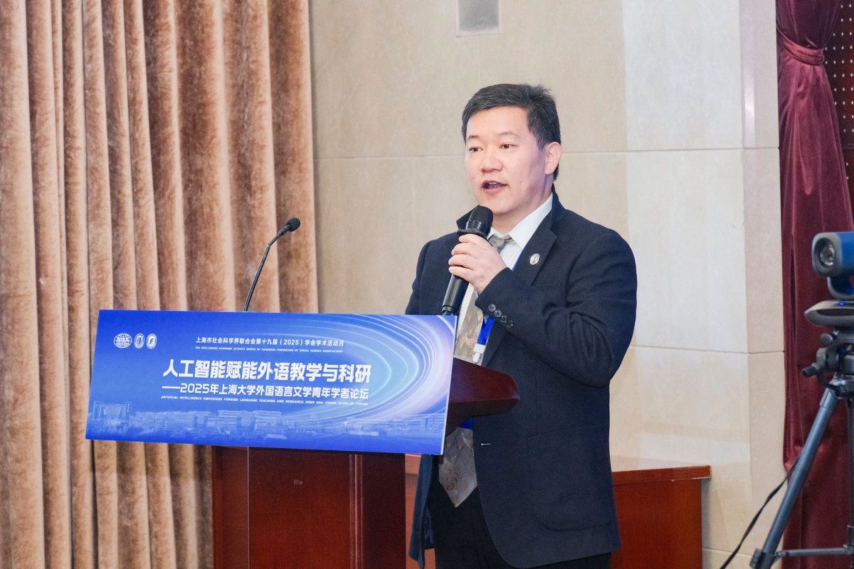 首先,上海外文学会副会长、上海大学外国语学院党委副书记、院长尚新代表上海市外文学会和上海大学外国语学院致辞,他介绍了学院近年来在学科建设、人才培养等方面取得的丰硕成果,并代表学院对上海市社会科学界联合会、上海市外文学会给予的长期支持表示诚挚感谢。他强调,上海大学外国语学院将以此次论坛为契机,持续提升学术创新与国际传播能力,为青年学者的学术交流搭建平台。