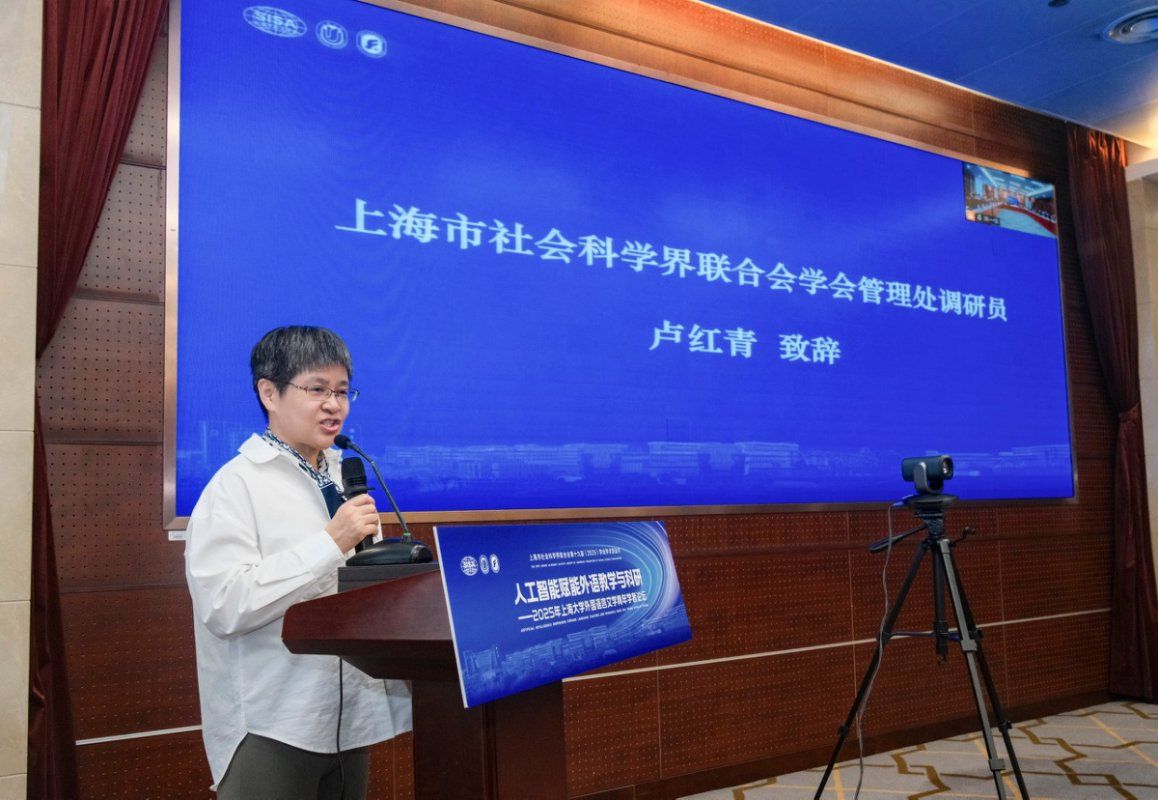 上海市社会科学界联合会学会管理处调研员卢红青回顾了上海市外文学会的历史发展和社联取得的学术成就,强调了对青年学者的重视与支持,并充分肯定了上海大学外国语学院在青年人才培养方面的主动担当。