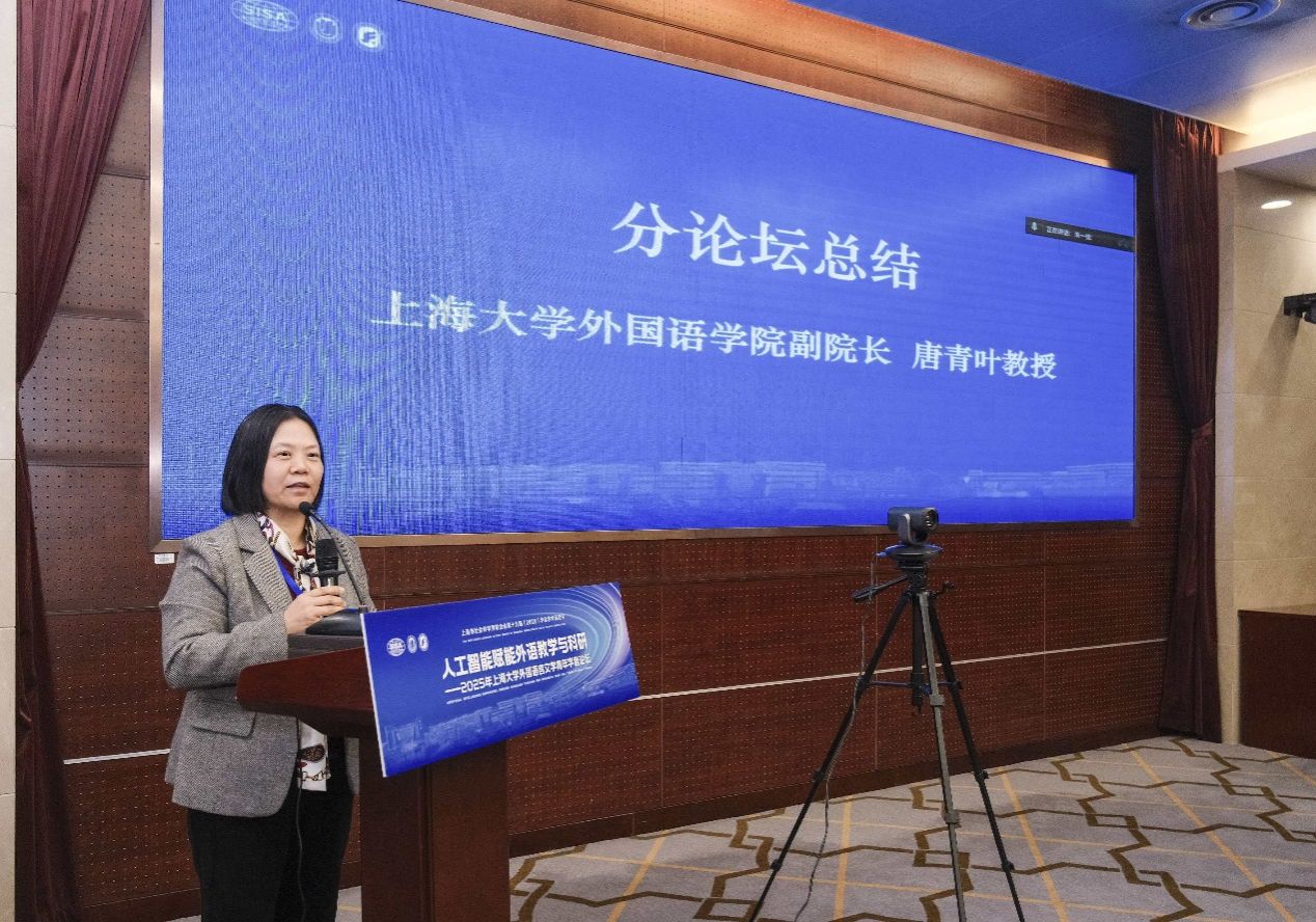 论坛闭幕式由上海大学外国语学院副院长唐青叶教授主持。唐青叶教授对下午两个平行论坛做了总结,她高度肯定了参会青年学者的创新力和创造力,对学者们取得的前沿研究成果表示充分赞赏,对他们的创新进取精神表示由衷钦佩。