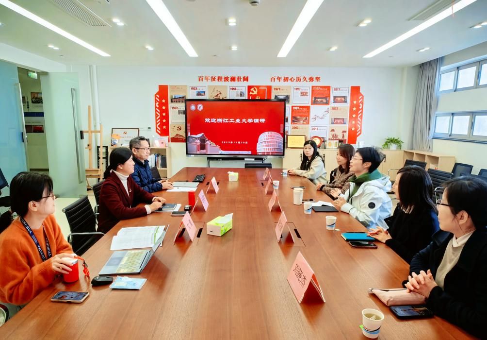 2025年11月28日上午,浙江工业大学外国语学院副院长张艺宁、日语系主任任萍、副主任金京淑、陈化仙、骨干教师刘晓杰一行到访外国语学院,双方在宝山校区C412会议室举行交流座谈会。外国语学院副院长张建琴、日语系主任赵莹波、副主任文雪出席交流会。
