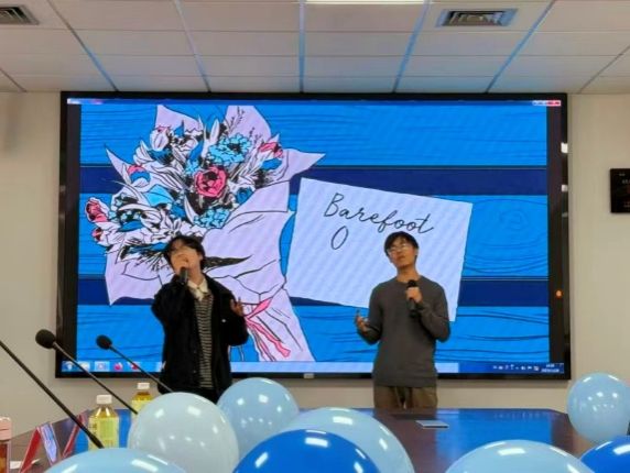 比赛伊始,外国语学院2022级本科生、上海大学十佳歌手韩可欣以视频助唱方式表达了对选手的支持与期待,为比赛拉开帷幕。第一轮比赛选手们两两组队,按抽签顺序登台一展歌喉。首先上台的王羽菲同学以一首旋律轻快的日语歌曲《Lemon》调动了全场的氛围,虽然她的搭档因故未到场,但她仍用真挚的演唱打动了人心;第二组选手李展鹏和陈宇豪,默契对唱,精彩演绎了英文歌曲《Perfect》,曲调悠扬,温柔缱绻;最后登场的王张茜和张仁熙带来了华语流行歌曲《手心的蔷薇》,配合精彩,感情充沛,动人心弦。