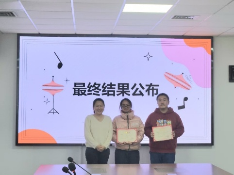 经综合评定,最终李展鹏、王张茜、陈宇豪分别斩获冠军、亚军和季军殊荣。张仁熙、王羽菲同学获得优秀奖。选手们依次上台,评委老师为其颁发证书。