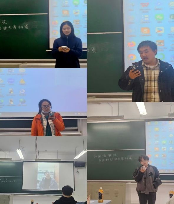 “世界语汇·歌以咏言”外国语学院多语种歌曲大赛初赛在11月16日晚于宝山校区A221举行。初赛结合线上预先投稿和线下演唱两种方式,由评委在现场统一收听后评分,参赛选手通过抽签决定现场表演和投稿视频的播放顺序。