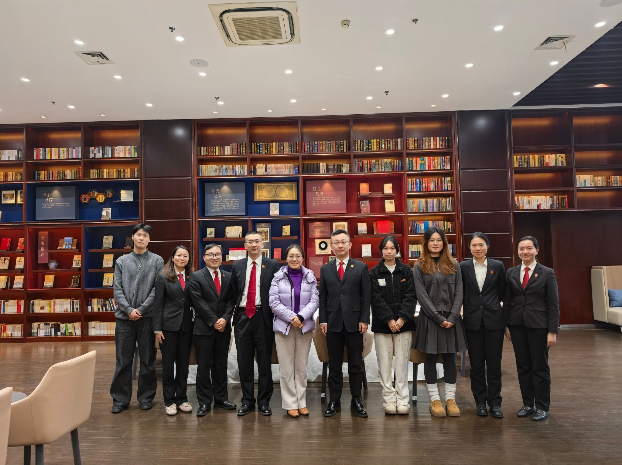 为深化语言学与法学交叉研究,提升实践育人成效,我院师生团队于梅欣副教授一行四人于2026年1月21日下午赴上海市徐汇区人民法院开展专题调研。上海市徐汇区人民法院党组成员、政治部主任谢猛,政治部副主任程龙、立案庭副庭长杨锋、审监庭副庭长陈亦雨、政治部法制宣传组(新闻中心)组长何忠婷、民事审判庭审判员阮琛莹法官等六位资深法官与调研团队进行了深入座谈交流。座谈会由谢主任主持。