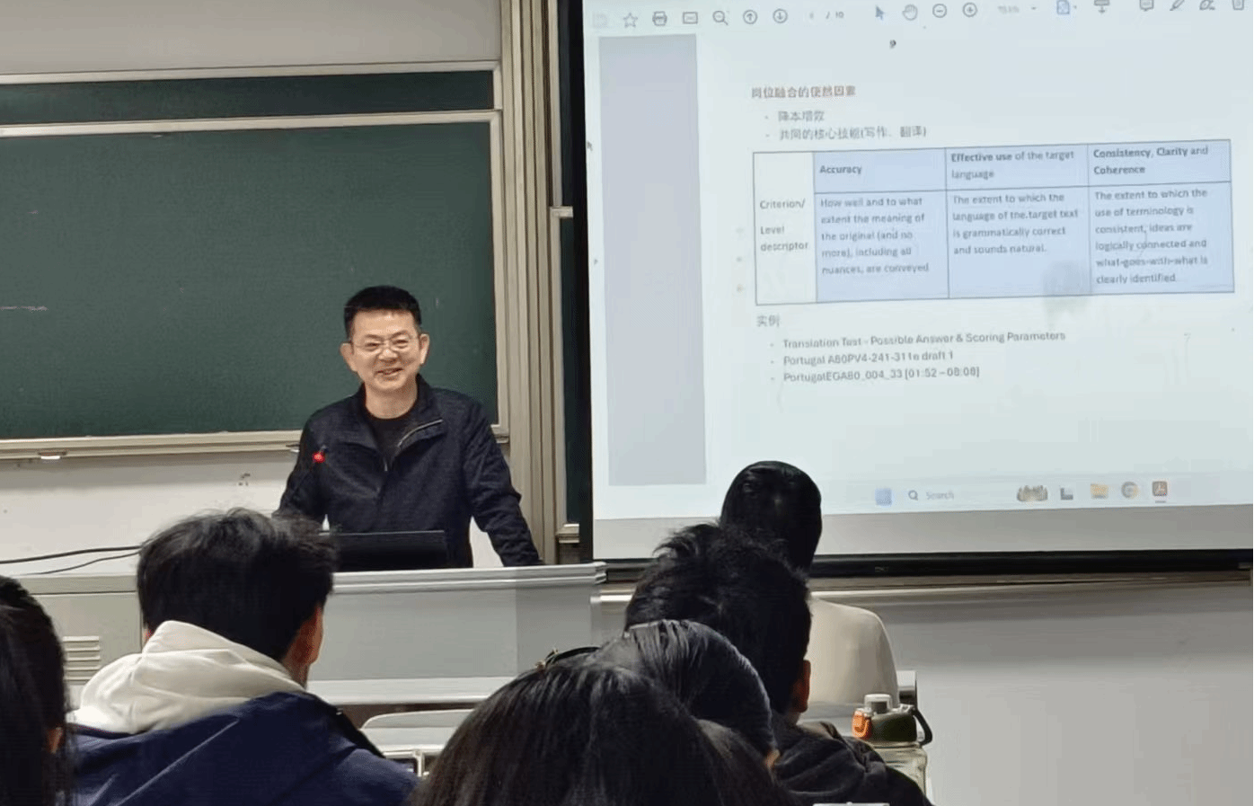 整场讲座内容丰富、案例翔实,引发了在场师生的深入思考与热烈讨论。黄文新先生的分享不仅揭示了国际前沿语言服务的最高标准与实践智慧,更为MTI人才的培养指明了清晰的能力进阶路径。(沈玉青、梁墨怡撰稿)