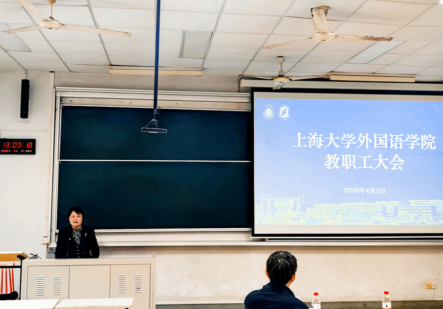 为深入学习贯彻全国两会精神,科学谋划学院“十五五”发展蓝图, 4月3日,外国语学院在CJ104召开全院教职工大会。全体教职工齐聚一堂,共学两会精神、共商发展大计、共绘奋进蓝图,以思想引领赋能外国语言文学学科高质量发展。会议由学院党委书记吴蔚主持。