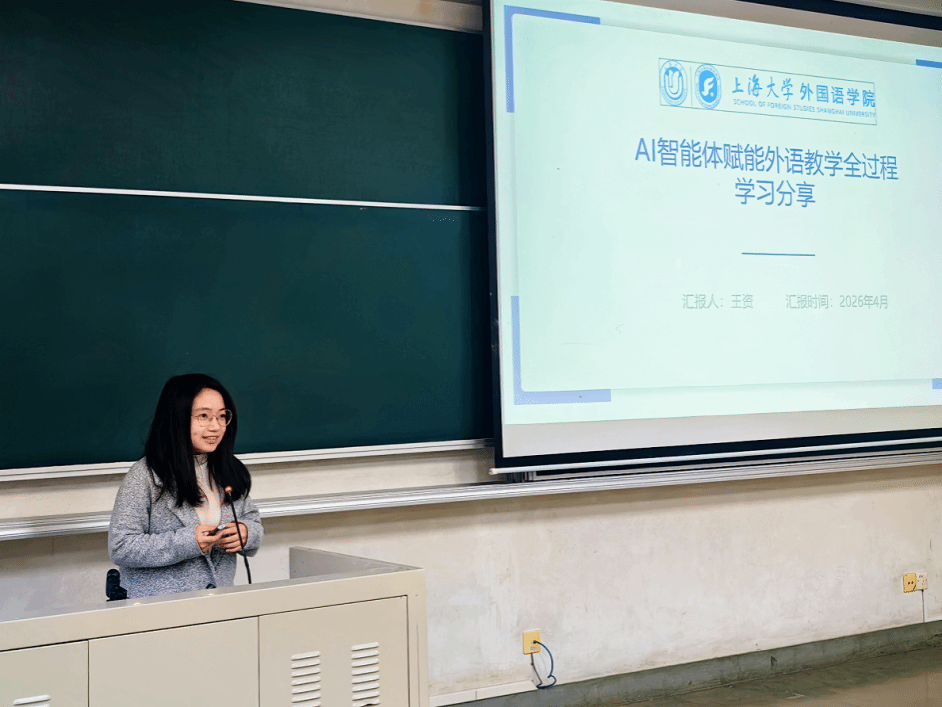 紧接着,学院青年教师王资作 AI 智能体赋能外语教学专题分享。她结合前期学院组织的AI教师学习培训,重点介绍了 AI 智能体在外语教学全流程的应用场景,以扣子编程为例介绍了实操方法,展示了AI工具对提升科学研究效果的途径。