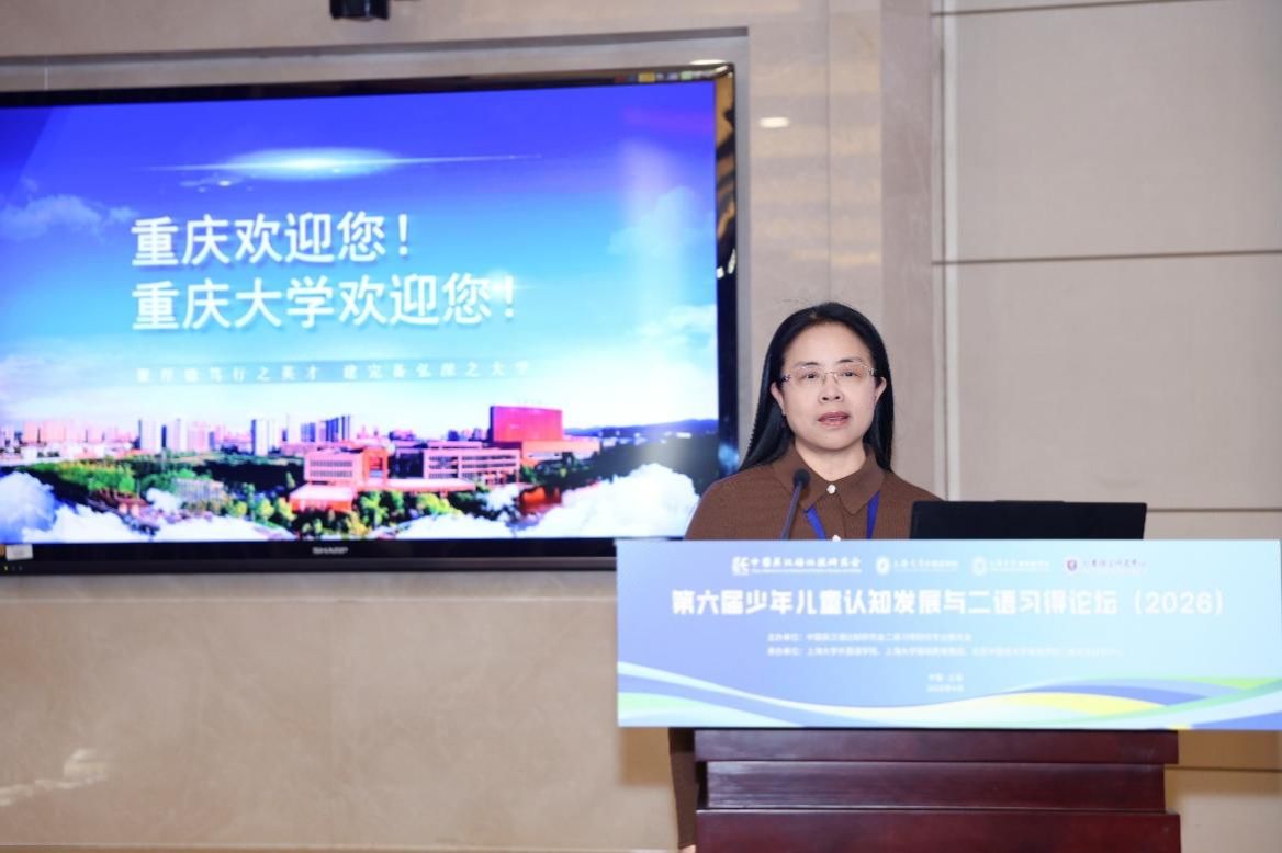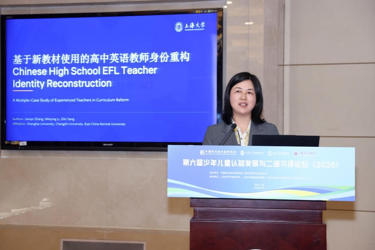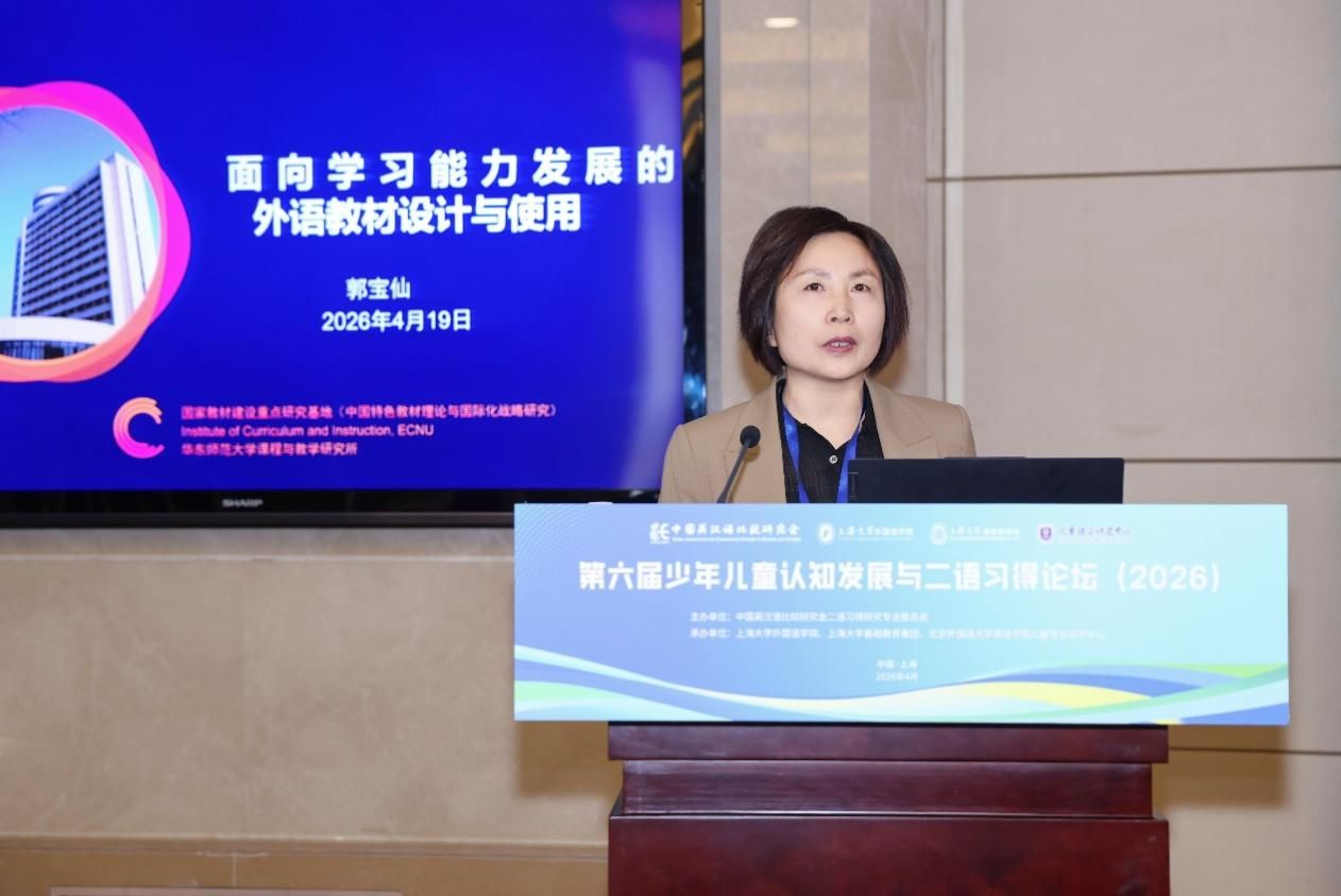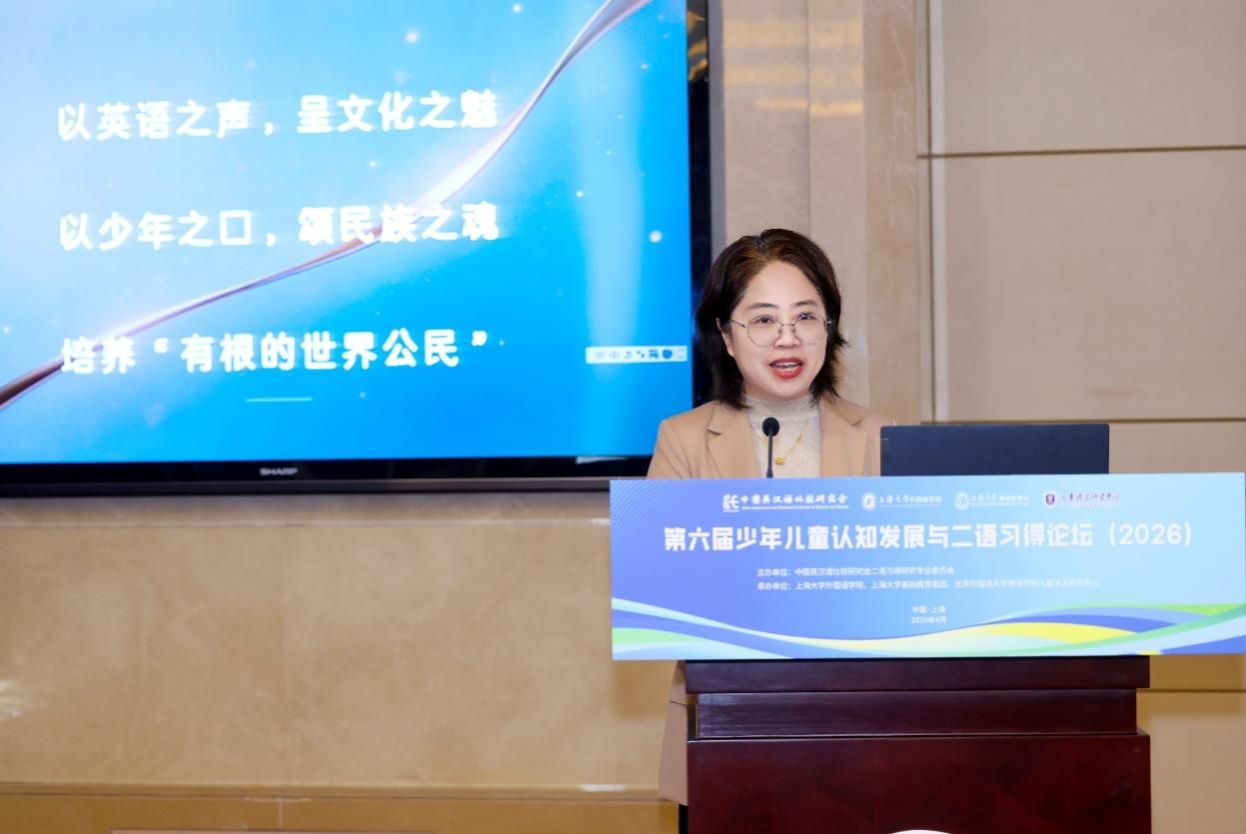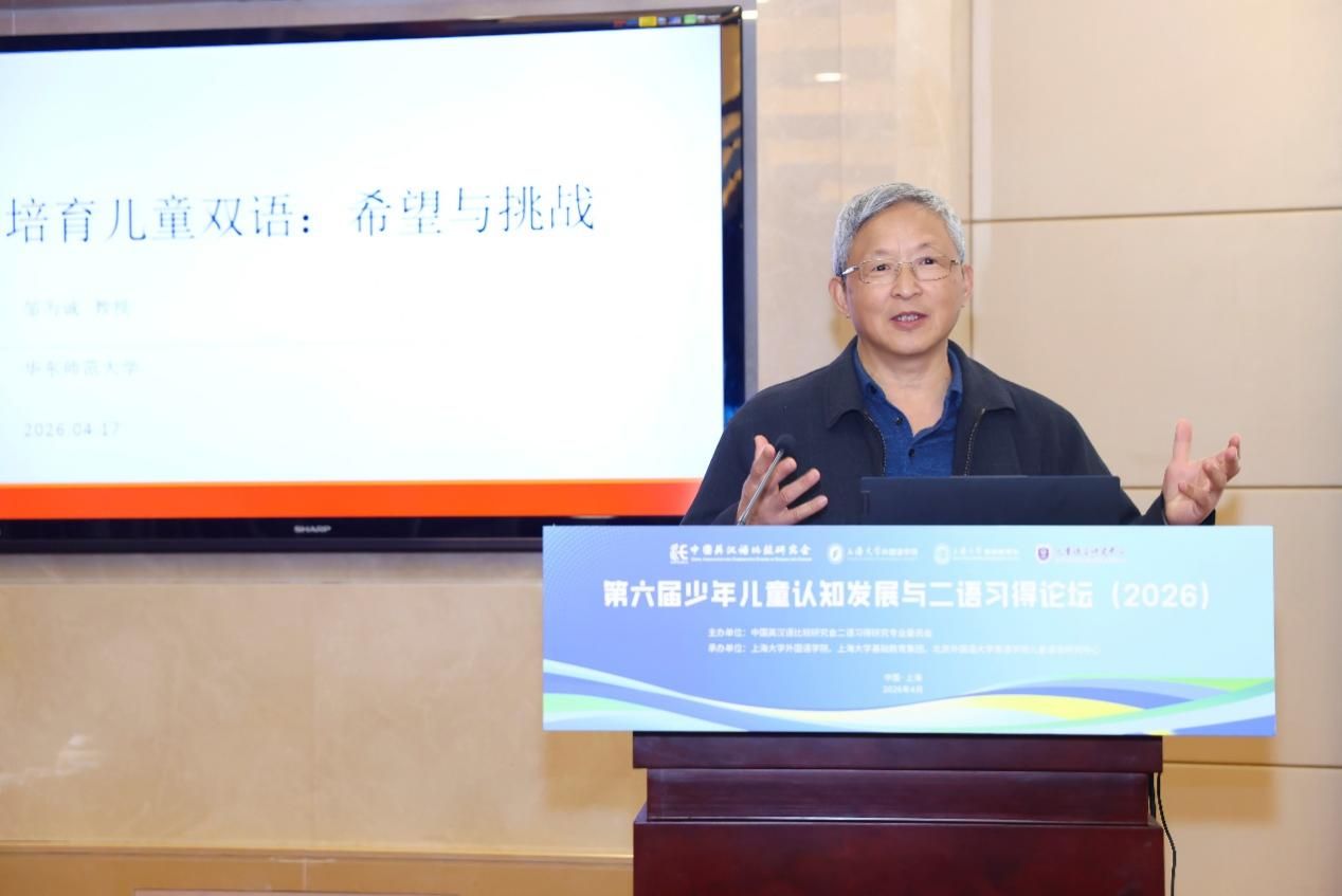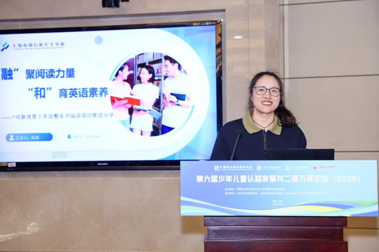 2026年4月18日至19日,由中国英汉语比较研究会二语习得研究专业委员会主办、上海大学外国语学院、上海大学基础教育集团与北京外国语大学英语学院儿童语言研究中心联合承办的“第六届少年儿童认知发展与二语习得论坛”在上海大学宝山校区乐乎新楼学海厅隆重举行。中国英汉语比较研究会二语习得研究专业委员会主任委员、华中科技大学徐锦芬教授、北京外国语大学英语学院院长杨鲁新教授、重庆大学未来教育研究院院长彭静教授、华东师范大学邹为诚教授、郭宝仙教授、上海市闵行区纪王学校张莉副校长、北京外国语大学英语学院儿童语言中心主任陈亚平、副主任王一虹和盖淑华等嘉宾出席此次论坛,上海大学党委副书记段勇、基础教育处处长陈然、副处长肖青峰,外国语学院党政领导系部主任及师生代表以及来自全国高校、科研机构及中小学的专家学者、一线教师、研究生等近百名代表齐聚一堂,围绕儿童认知发展规律与外语学科素养培育,共同探讨儿童二语习得的新趋势、新问题与新机遇。开幕式由上海大学外国语学院院长尚新教授主持。