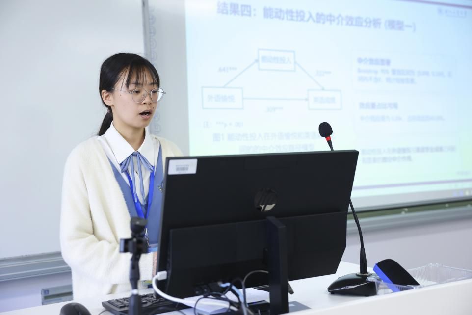 随后,5个平行分论坛同步展开,围绕“儿童外语习得与认知发展”、“双语发展、跨语言迁移与学习者差异”、“课堂教学实践与教师发展”、“学科素养、教材课程与外语教育政策”、“人工智能技术在儿童外语习得研究中的应用”五大议题,近40位研究者分享了最新研究成果,并与听众进行了互动交流,各位主旨报告专家也进入各个平行分论坛,对学者们的报告进行了指导。值得一提的是,其中有6组报告共计10人为上海大学外国语学院的本硕学生,他们的报告具有很好的创新设计和研究发现,得到了与会专家学者们的充分肯定。