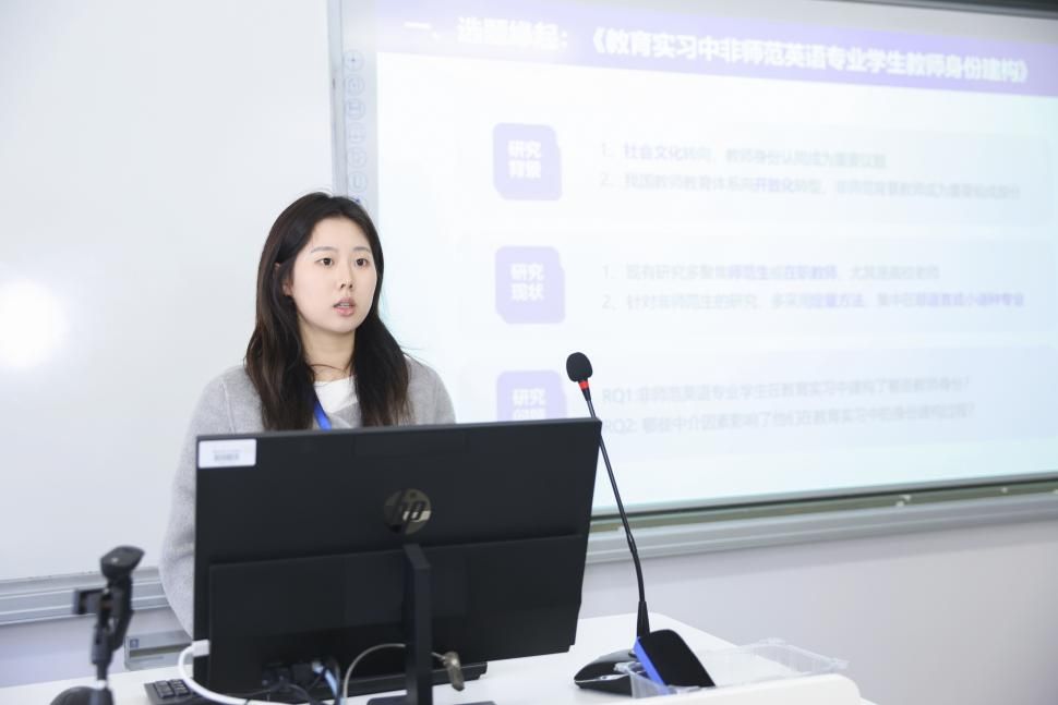 第七场主旨报告由上海大学外国语学院大学外语部主任李晓媛副教授主持。上海大学外国语学院副院长张建琴副教授以“基于新教材使用的高中英语教师身份重构”为题,通过多案例研究方法,介绍了三位高中熟手英语教师在使用新教材过程中的身份重构情况。在教学改革中,熟手教师能够基于先前身份和不同个体能动性,通过教师学习、反思和实践参与,以不同程度的实践路径重构自身身份。
