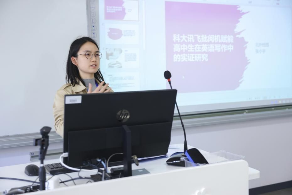 4月18日下午,在平行论坛开始之前,专门设置了两个教学展示分会场,分别是初中整本书阅读教学展示和高中新教材教学展示。闵行区纪王学校黄婧老师结合课堂教学实录进行了初中整本书阅读的说课分享。课程设计了多个层层深入的小组任务,从语言能力和思维能力等多个维度帮助学生产出,并运用人工智能对学生的学习情况进行了评价。邹为诚教授、杨鲁新教授和王一虹研究员对黄婧老师的说课进行了中肯的点评,并从阅读材料的挑战性、问题设计的开放程度、语言意识的培养等方面提出了可行性建议。