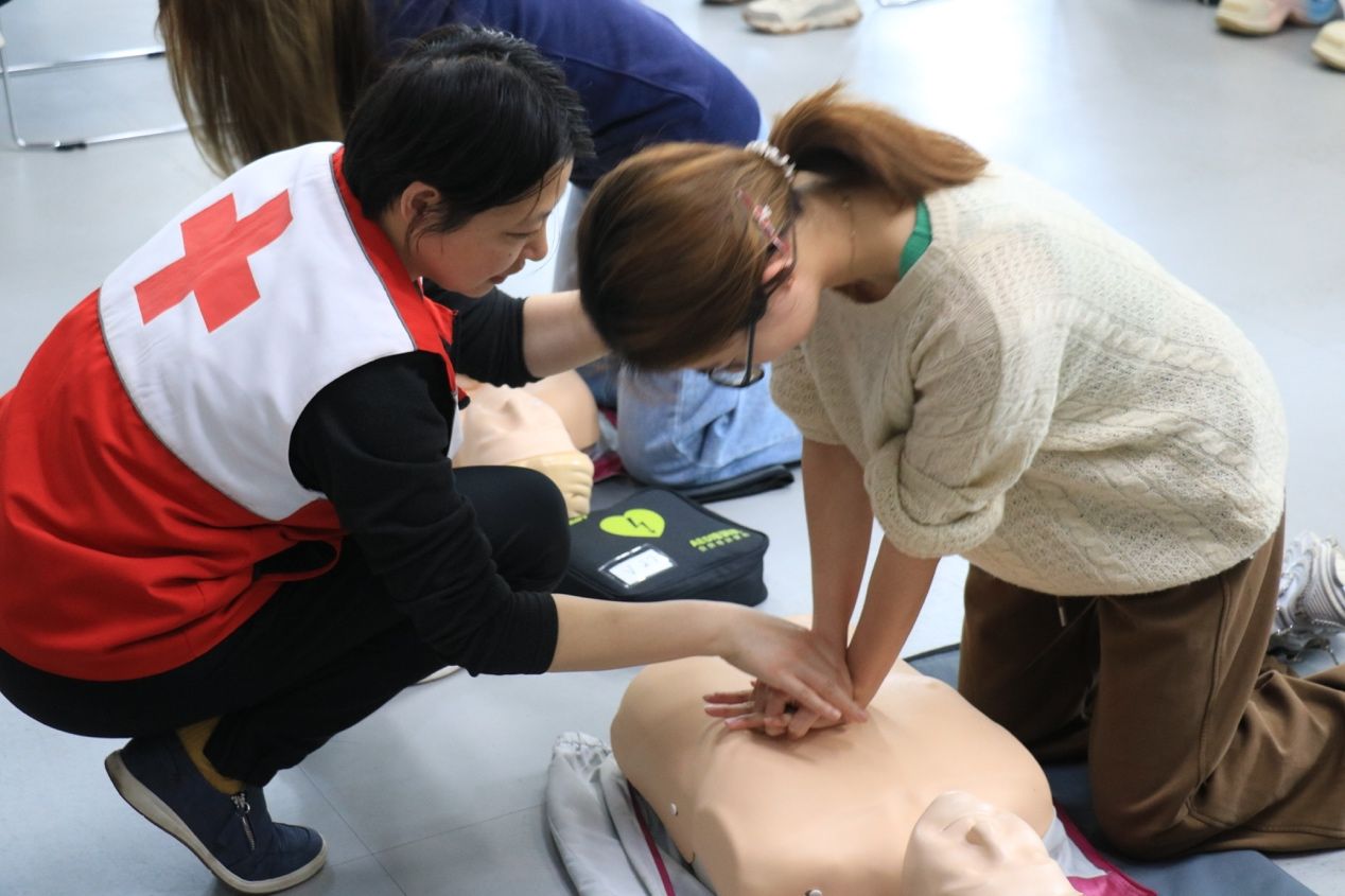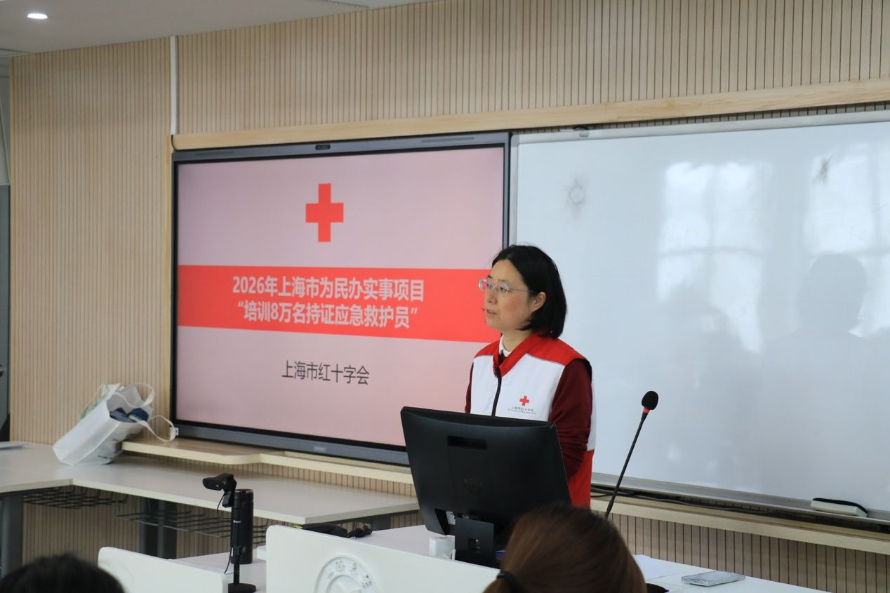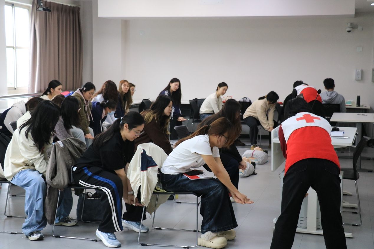 2026年4月17日下午,由上海大学外国语学院主办,“语通世界”多语种志愿服务团队承办,大场镇红十字会提供专业支持的2026年春季应急救护培训,在宝山校区B310教室顺利举行。为深入落实2026年上海市为民办实事项目“培训8万名持证应急救护员”工作部署,扎实推进“红十字救在身边”行动,助力健康校园建设,本次培训面向全校招募30名成员参与,活动采用理论授课、实操练习与技能考核相结合的系统教学模式。
