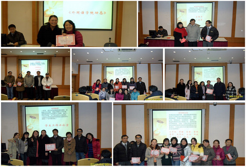 召开了年终表彰大会,会上表彰了一批表现优秀的个人奖和集体奖:辛勤奉献奖、爱岗敬业奖、学院活动贡献奖、科研奖、管理工作好项目奖和优秀集体奖。希望在新的一年,外国语学院有更好的发展。