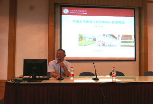 9月26日下午,北京大学外国语学院院长程朝翔教授为外国语学院师生带来了一场题为"外国文学教育与社会的核心价值观念"的精彩讲座。