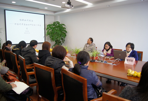 12月14日,上海大学文学院执行院长、博士生导师董丽敏教授在C楼512室做了一场题为"性别如何政治——对当代中国妇女研究的一种反思"的讲座,外国语学院院长周平、副院长冯奇及众多师生参加了此次活动,讲座由曾桂娥副教授主持。