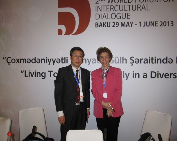 应联合国教科文组织、欧洲委员会、阿塞拜疆共和国政府邀请,我校外国语学院副院长庄恩平教授作为欧洲委员会跨文化城市专家于2013年5月29-6月1日出席了在阿塞拜僵共和国巴库城市举行的第二届世界论坛,本次世界论坛主题为"多元世界和平相处",庄恩平教授还主持了主题为"以跨文化城市视角审视21世纪社会城市政策"的欧洲委员会论坛专场。100多个国家500余名国家政要、外交官、国际组织官员以及学者参加本届本次盛会,阿塞拜疆共和国总统伊利哈姆·阿利耶夫阁下、联合国教科文组织总干事伊琳娜·博科娃女士等作了主题发言。
