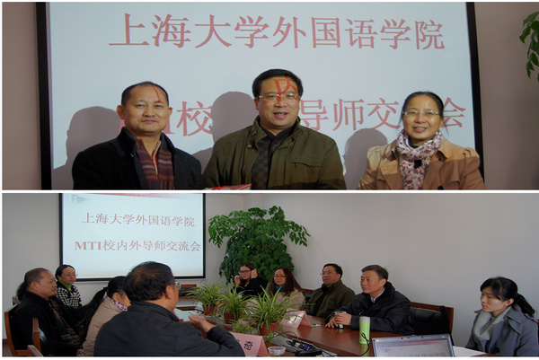 为了进一步提高我院翻译硕士的培养质量,加强翻译硕士实习的有效管理,外国语学院和上海译文出版社实践基地于2013年11月28日下午在C楼512室举行了"MTI校内外导师交流会"。