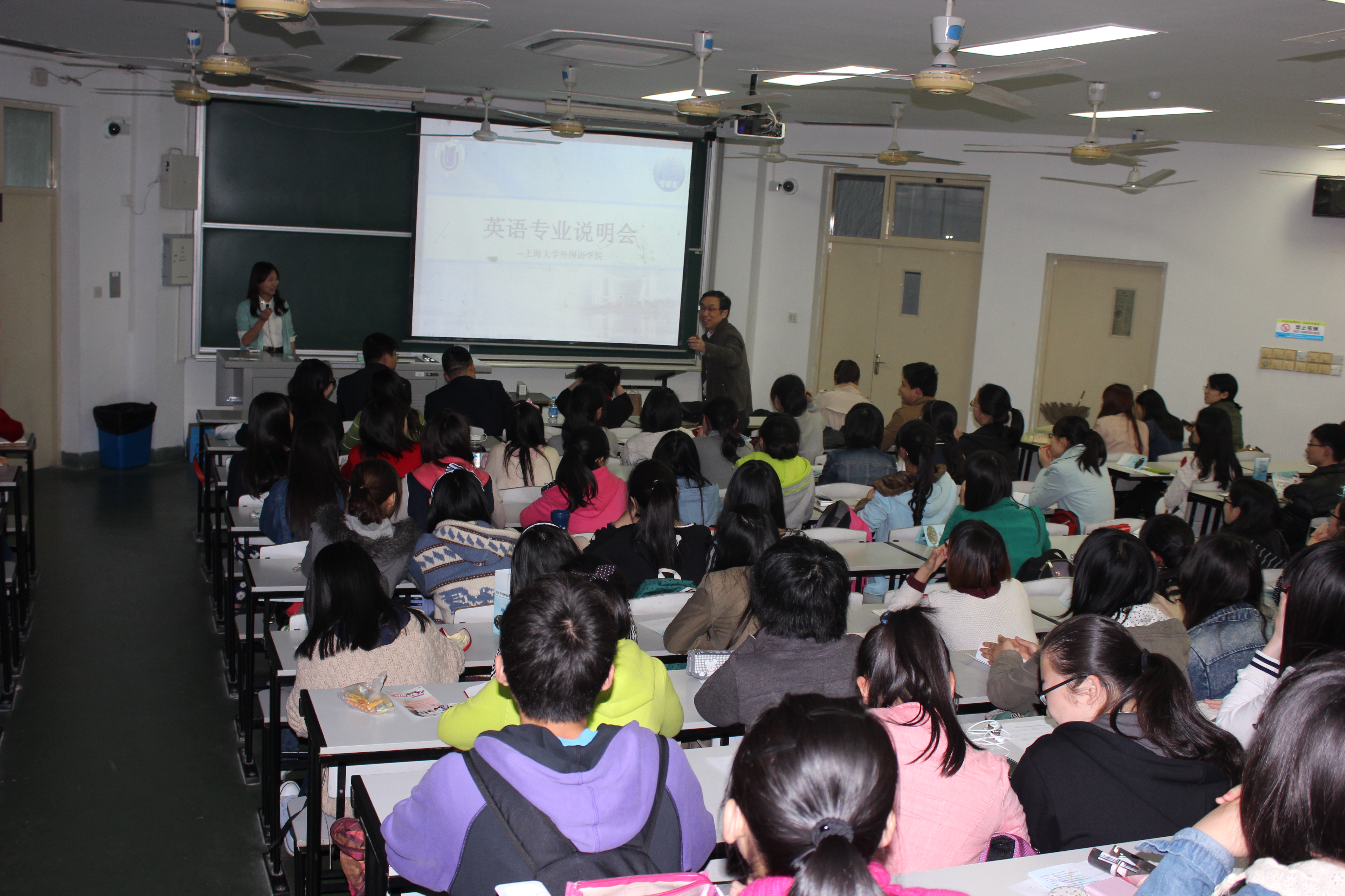 外国语学院2014年英语专业说明会于4月14日18:00在GJ206楼成功举行。外国语学院副院长庄恩平、党委副书记王国建、英语系主任肖福寿、副主任张建琴、硕士生导师阚怀未以及部分外院师生和大一人文大类的近200名同学参加了此次活动。