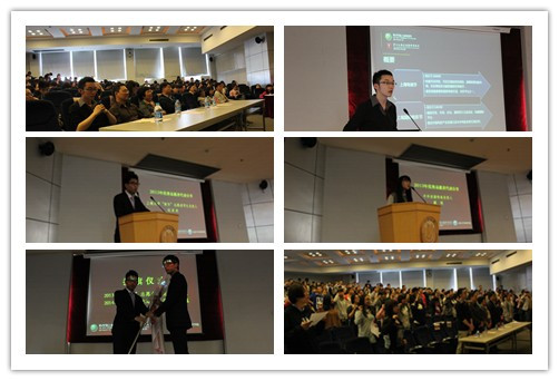 宣讲会以一段视频短片《光影随心,志者愿行》开始,回顾了2013年"两节"志愿服务工作,领略了志愿者们的志愿精神,彰显了上大学子的青春风采。在"两节"组委会代表发言环节,鞠里详细介绍了今年上海电视节和上海国际电影节的筹备和组织实施情况,并对在场志愿者们提出今年志愿者工作的总体要求。鞠先生言语风趣幽默,博得了在场师生的阵阵掌声,同学们对"两节"也有了清晰地认识。随后,2013年上海大学"两节"志愿者负责人刘欢欢(10级英语系)、2013年中外宾接待组负责人戴琰(11级日语系)、2013年字幕组优秀志愿者葛晶晶(11级日语系)分享了他们在"两节"服务期间的经历体验,同时对同学们今年的志愿服务提出了更高的期望。接着,刘欢欢同学为2014年志愿者代表许栋瀛授旗,志愿者代表许栋瀛带领全体志愿者宣誓。最后优秀志愿者们为同学们详细讲解如何填写报名表,并针对"两节"服务岗位等问题作了一一解答。至此,第20届上海电视节、第17届上海国际电影节志愿者活动正式启动。