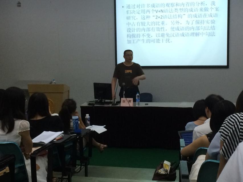 7月11日上午9点,南京师范大学外国语学院教授、博士生导师张辉教授应邀赴我院在宝山校区J楼101室做题为"熟语语义组构性的实验研究"的讲座。讲座由冯奇副院长主持。