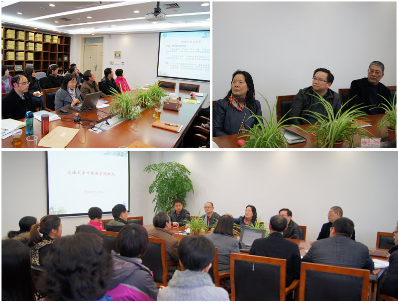 12月9日,校党委副书记夏小和一行来我院进行调研。院党政班子、学科带头人、系主任、支部书记、工青妇代表等出席会议,会议由施雯书记主持。周平院长首先从学院的定位与愿景、组织架构、师资队伍、人才培养和学科建设、学科水平、获奖情况等方面进行了外国语学院的全面介绍,并分析了当前发展中的不足。院党委书记施雯补充介绍了学院女性教师多、公共基础课教师多、博士教师比例不足等特点,并结合十三五规划提出了师资队伍结构调整的迫切性。与会教授朱振武、谢之君等也进行了热烈的讨论。