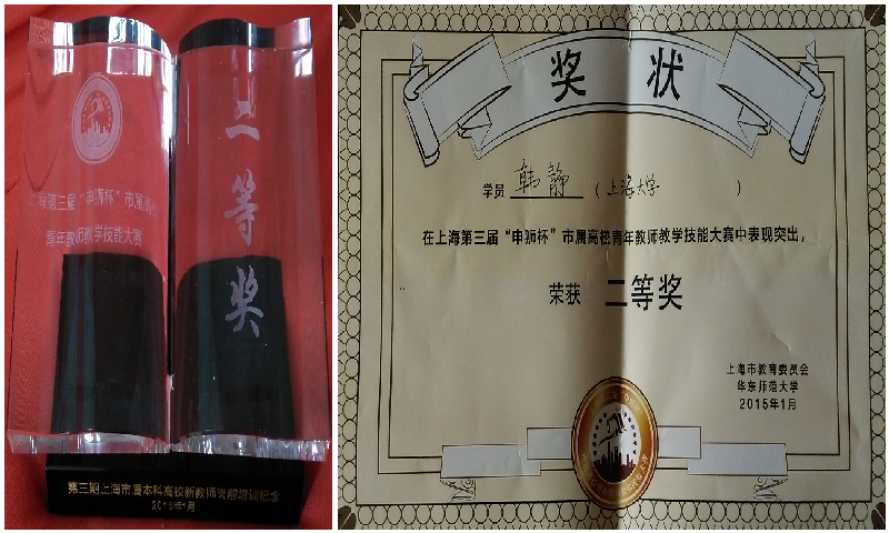 韩静博士获上海市青年教师教学技能大赛二等奖